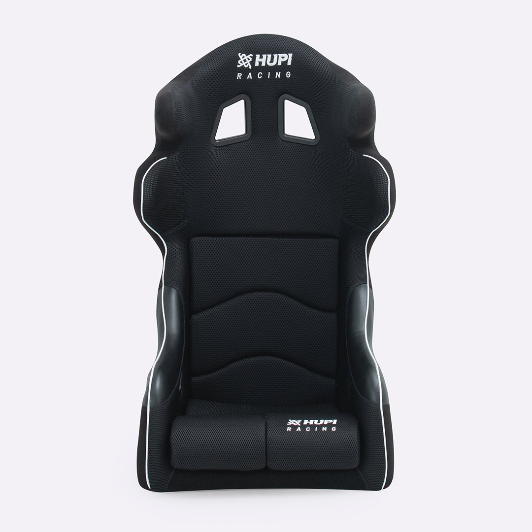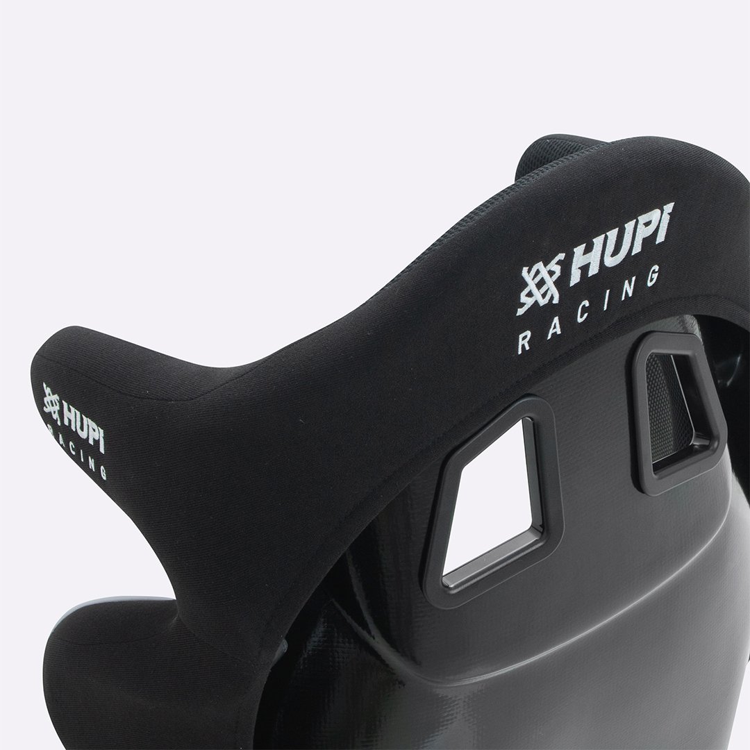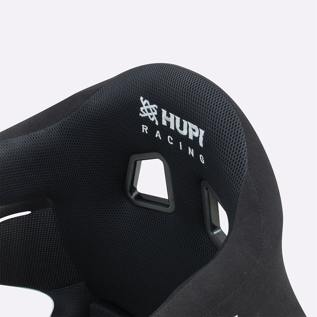 Na parte interna, o banco utiliza tecido mesh respirável com tecnologia HUPI Thermo Flow, desenvolvida para otimizar a ventilação e ajudar no controle de temperatura e do suor durante o uso. Isso garante mais conforto ao piloto, principalmente em sessões prolongadas e em condições de alta intensidade. Já o acabamento externo em velvet entrega um visual mais sofisticado, enquanto as laterais com revestimento em couro aumentam a durabilidade, especialmente em áreas de maior contato com o cinto de segurança.