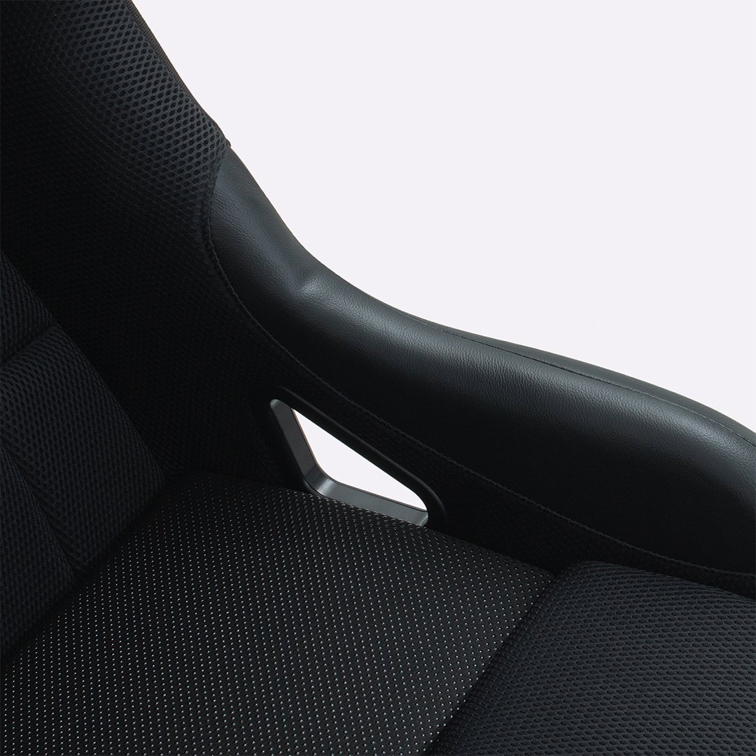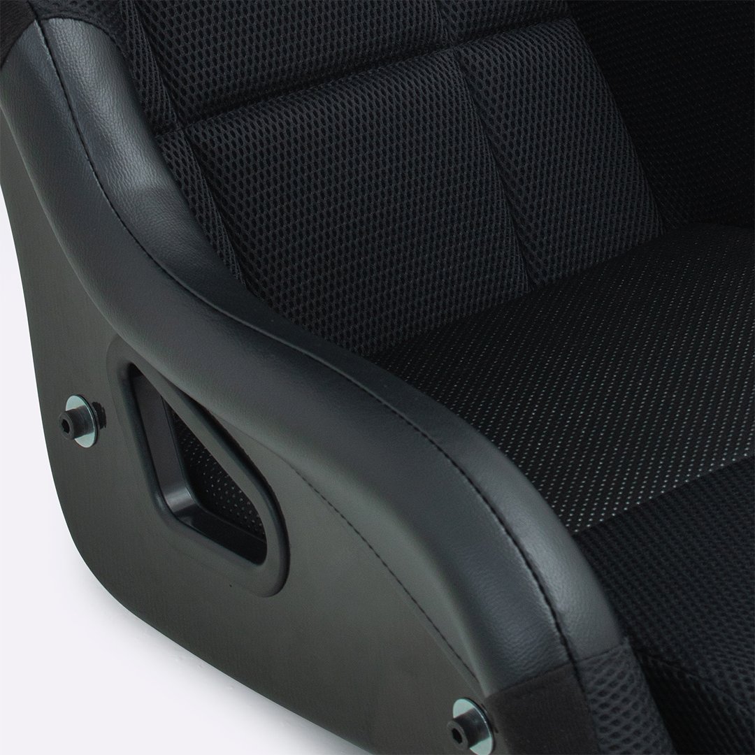O Banco para Automobilismo HUPI Racing também se destaca pelo uso de três tipos de tecidos estratégicos, pensados para performance e durabilidade. Na parte interna, o tecido mesh respirável conta com a tecnologia HUPI Thermo Flow, que auxilia na dissipação do calor e no controle do suor, mantendo mais conforto durante a pilotagem, especialmente em uso intenso. No acabamento externo, o velvet entrega um visual sofisticado e acabamento premium. Já nas laterais, o revestimento em couro aumenta a resistência ao desgaste, principalmente no contato constante com o cinto de segurança.