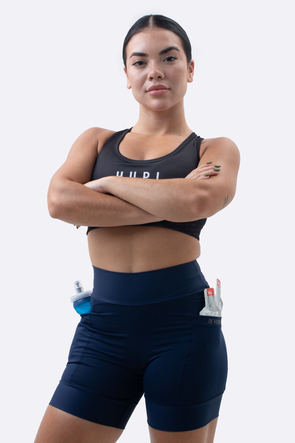 Tecnologias e Benefícios da Bermuda de Compressão Feminina HUPI Run Curta Azul Marinho
