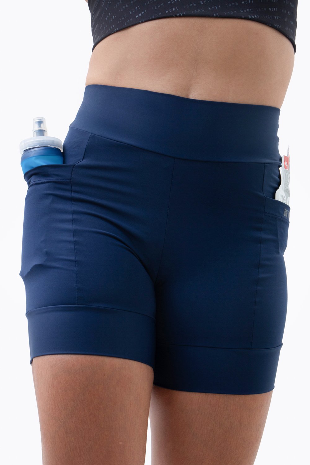 Tecnologias e Benefícios da Bermuda de Compressão Feminina HUPI Run Curta Azul Marinho