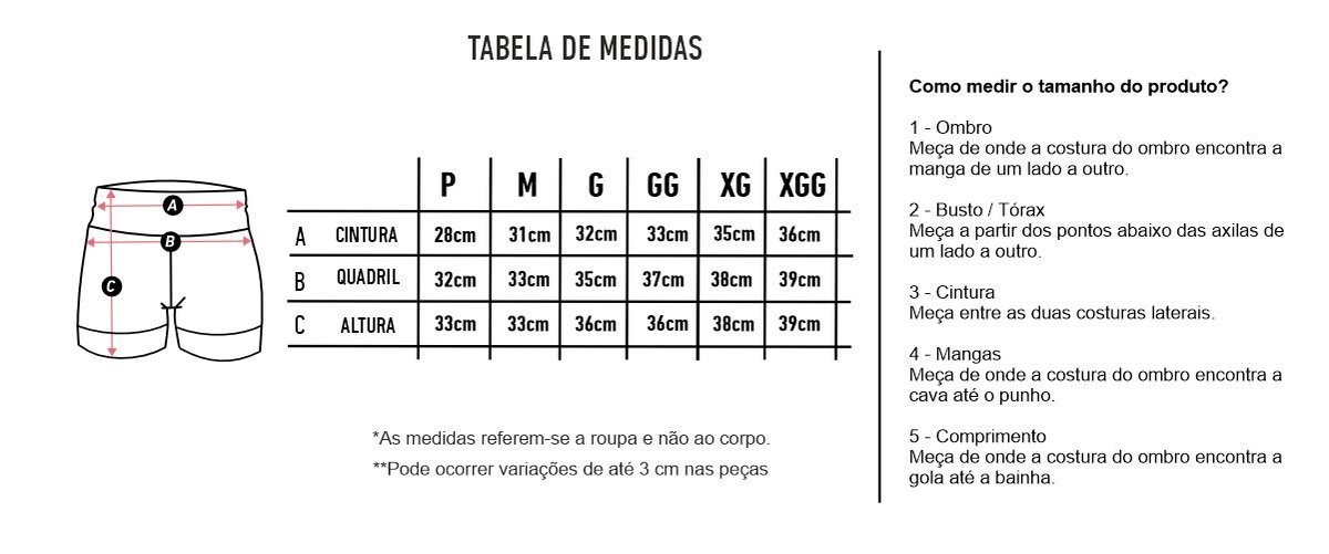 Não secar em tambor: O calor excessivo da secadora pode deformar o tecido e fazer a bermuda perder o ajuste anatômico.