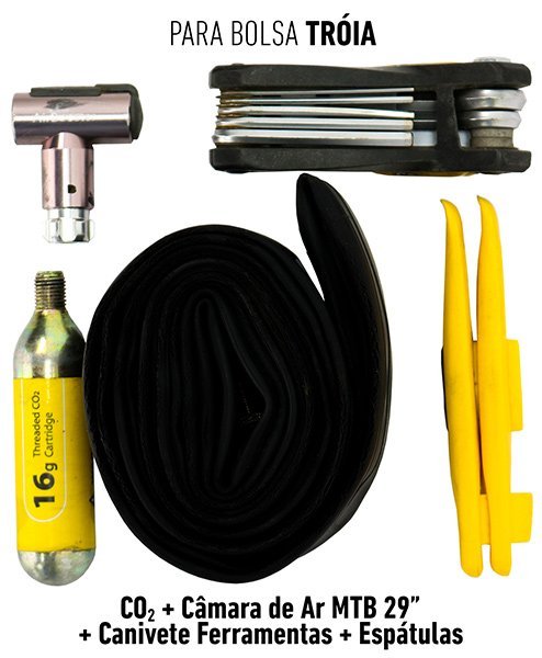 Fixa no selim e com espaço considerável, mais um ponto positivo deste acessório é que não precisa ficar removendo a bolsa de selim da bike, basta conferir se não faltam acessórios antes do pedal!