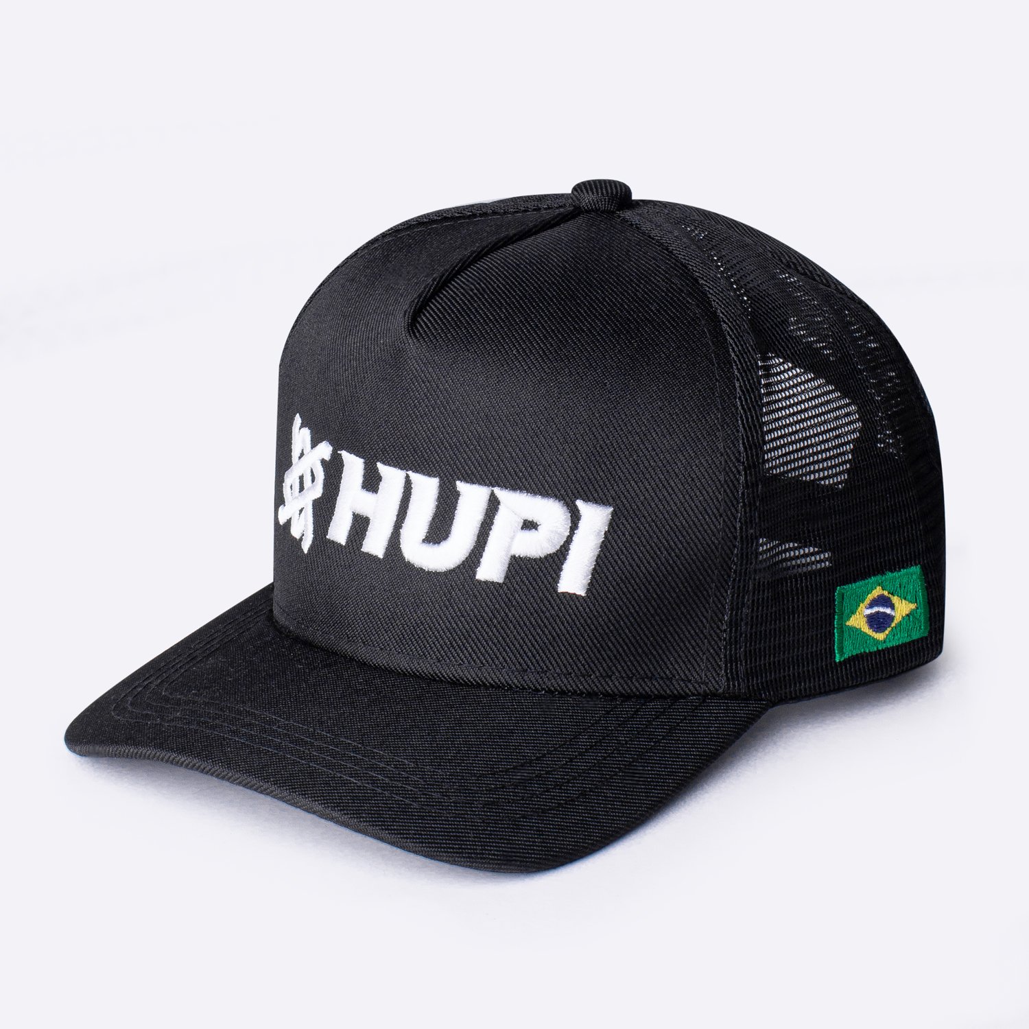 Bordado Frontal e Lateral: Exibe o logotipo da HUPI com destaque em bordado 3D na cor branca, adicionando um toque elegante e visível.