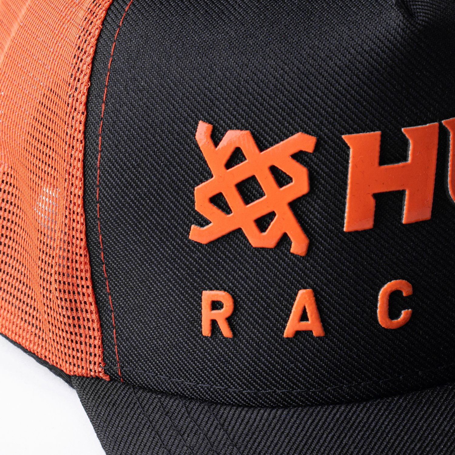Emborrachado Frontal e Lateral: Exibe o logotipo da HUPI com destaque em emborrachado 3D na cor branca, adicionando um toque elegante e visível.