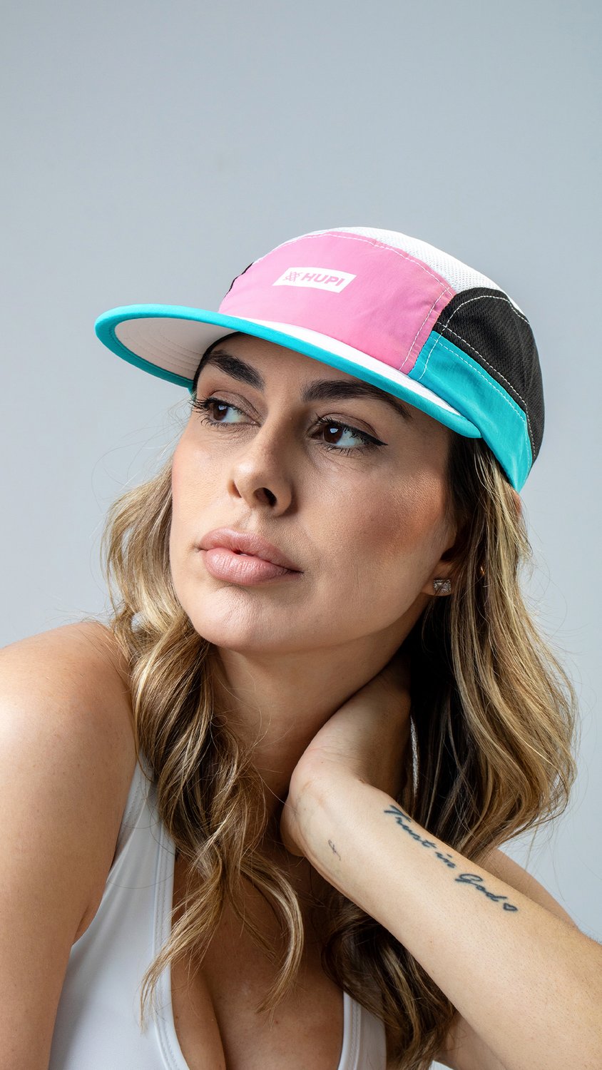 Produto: Boné para Corrida HUPI Run Verde/Rosa