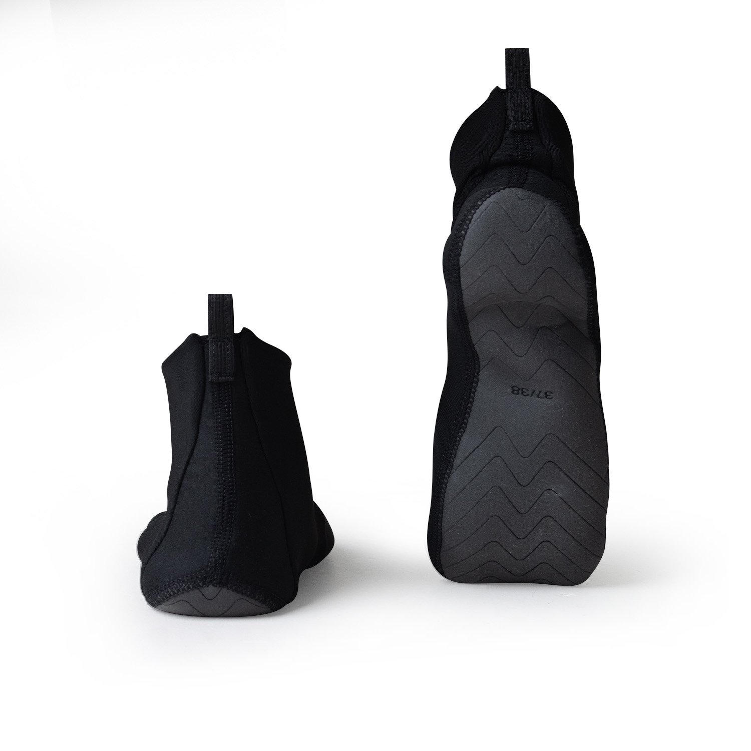 A sola antiderrapante de borracha proporciona aderência superior, enquanto o ajuste anatômico e os puxadores tornam o uso prático e confortável.