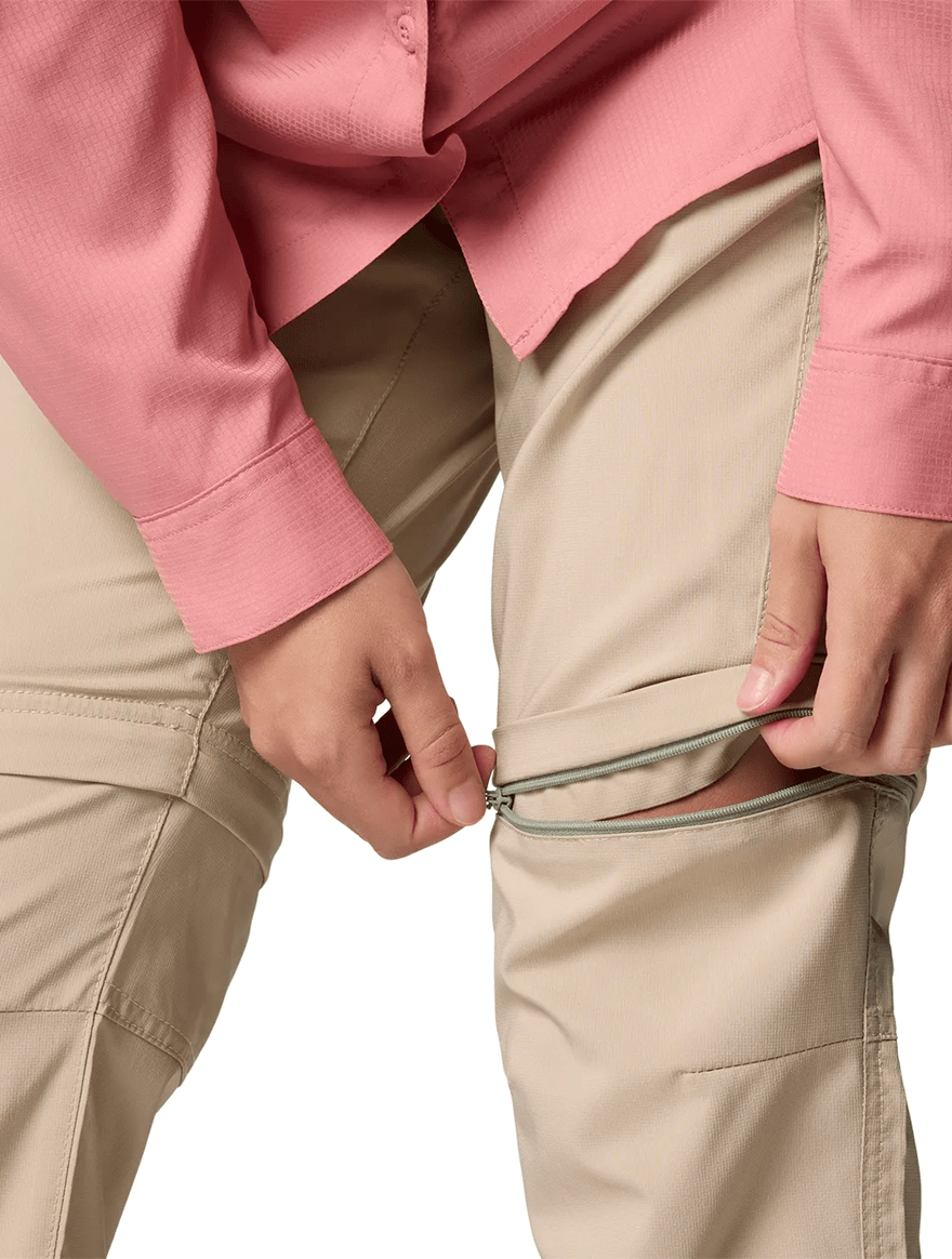 A Calça Columbia Feminina Silver Ridge Utility Convertible Bege é a escolha perfeita para mulheres que valorizam conforto, funcionalidade e proteção em aventuras ao ar livre.