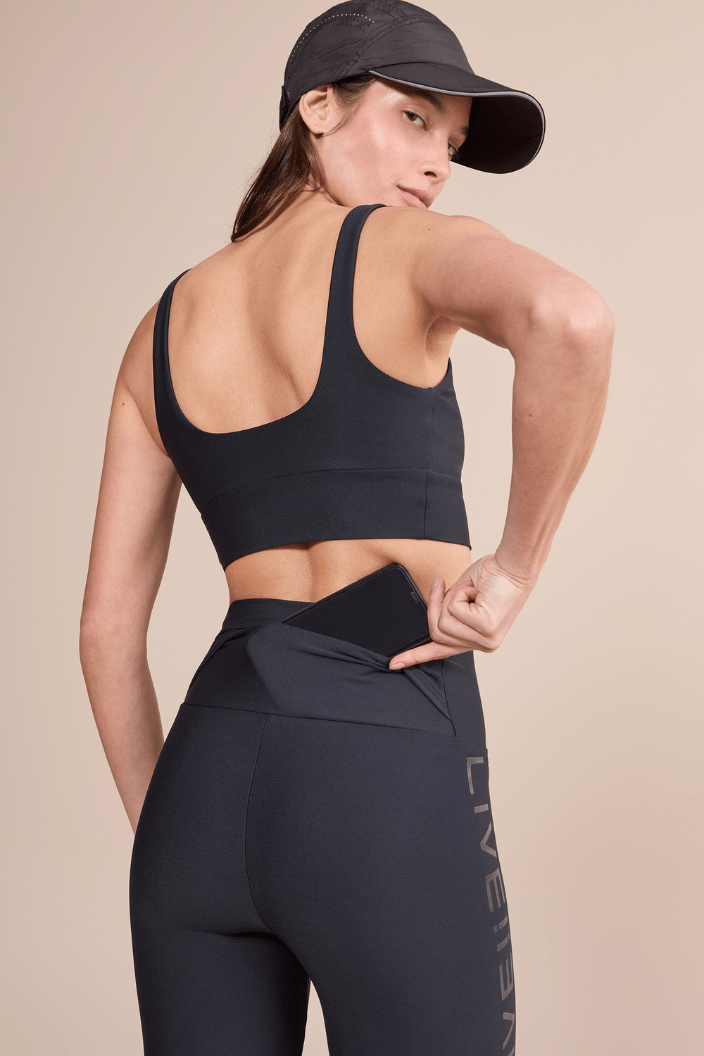 Bolso no cós traseiro: Ideal para chaves, gel ou itens essenciais com discrição.