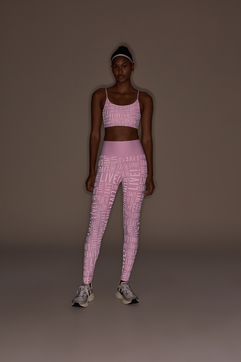 Estampa Signature LIVE! com tecnologia REFLEX: Segurança em treinos noturnos ou com baixa luminosidade.
