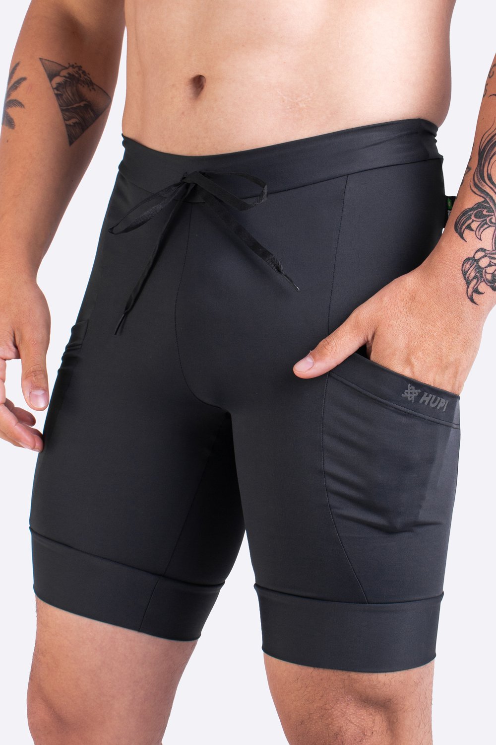 Bermuda de Compressão Masculina HUPI Run Pro: Proporciona suporte muscular e conforto com bolsos funcionais, ideal para levar seus essenciais durante a corrida.