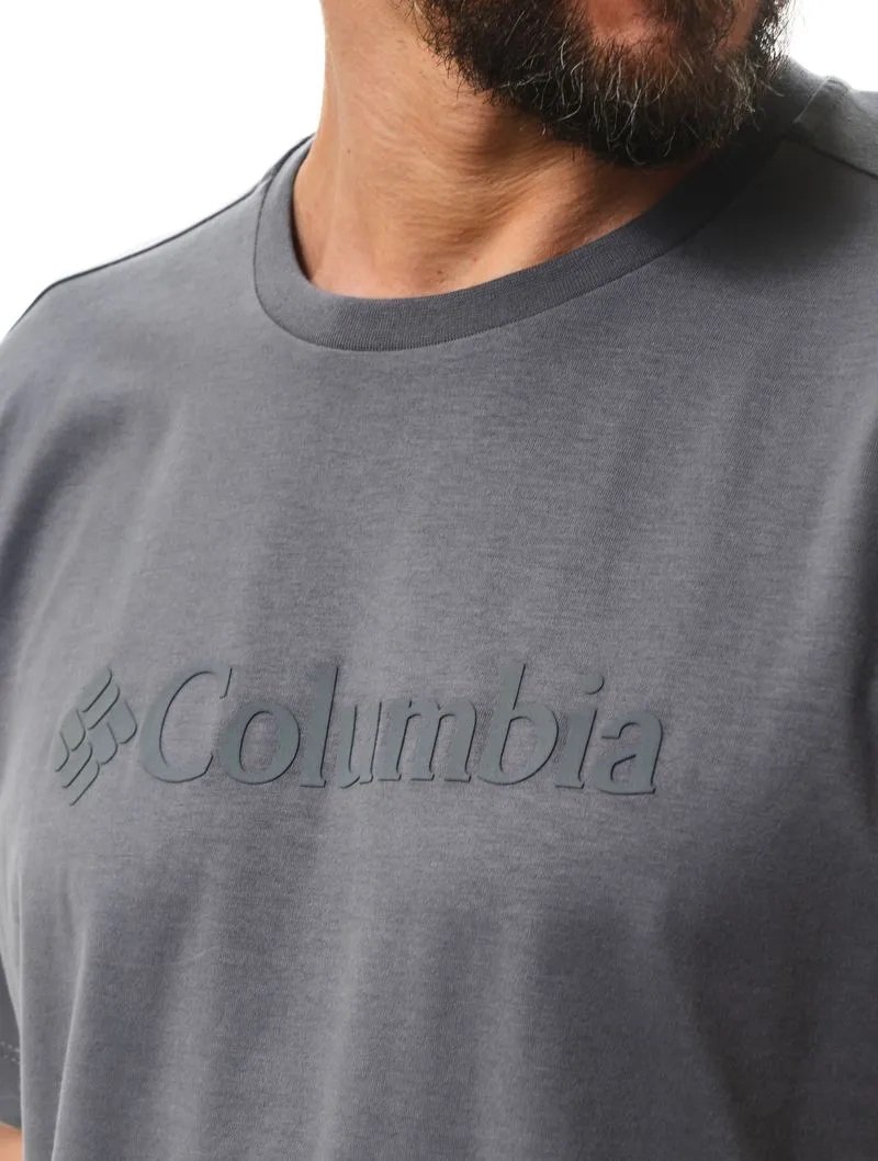 O logo Columbia estampado no peito adiciona um toque de personalidade sem exageros, enquanto a cor cinza neutra facilita a combinação com diversas peças e ocasiões.