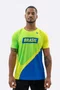 Camiseta dry fit com 96% poliéster e 4% elastano, garantindo leveza e elasticidade