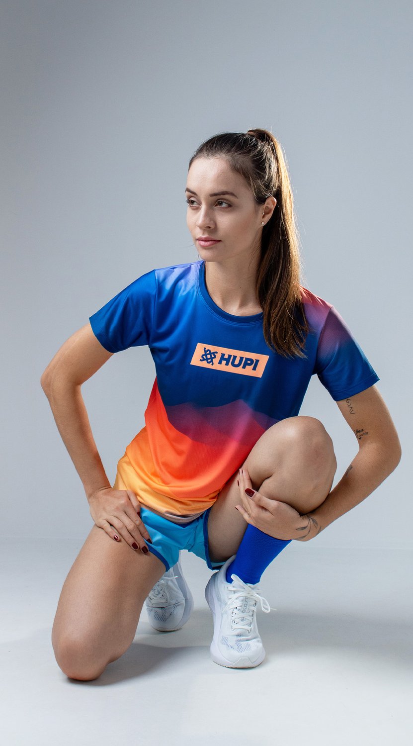 O visual esportivo e versátil com o logo HUPI aplicado no peito completa o design funcional com estilo.