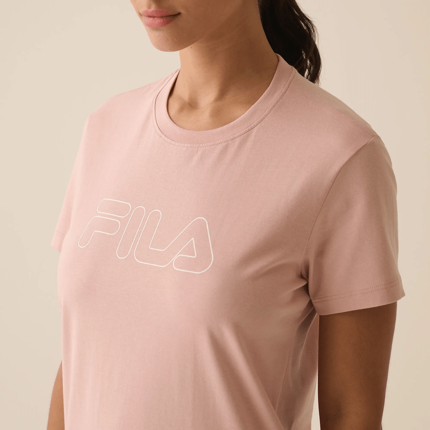 A Camiseta Fila Regular Basic Outline Feminina Rose alia design funcional com visual moderno.