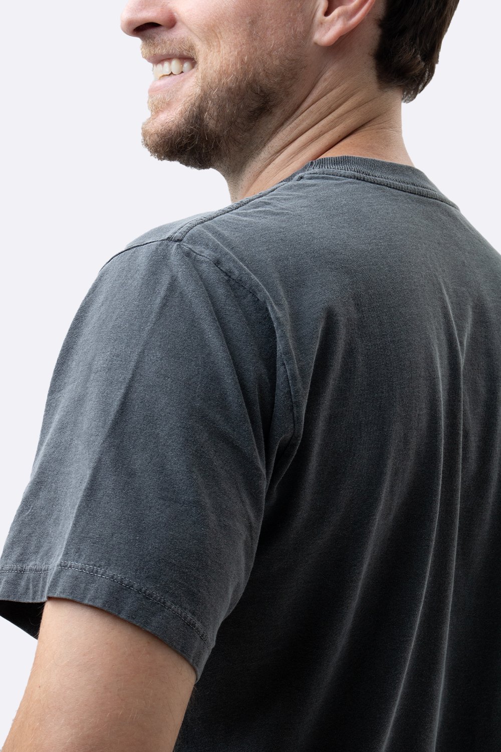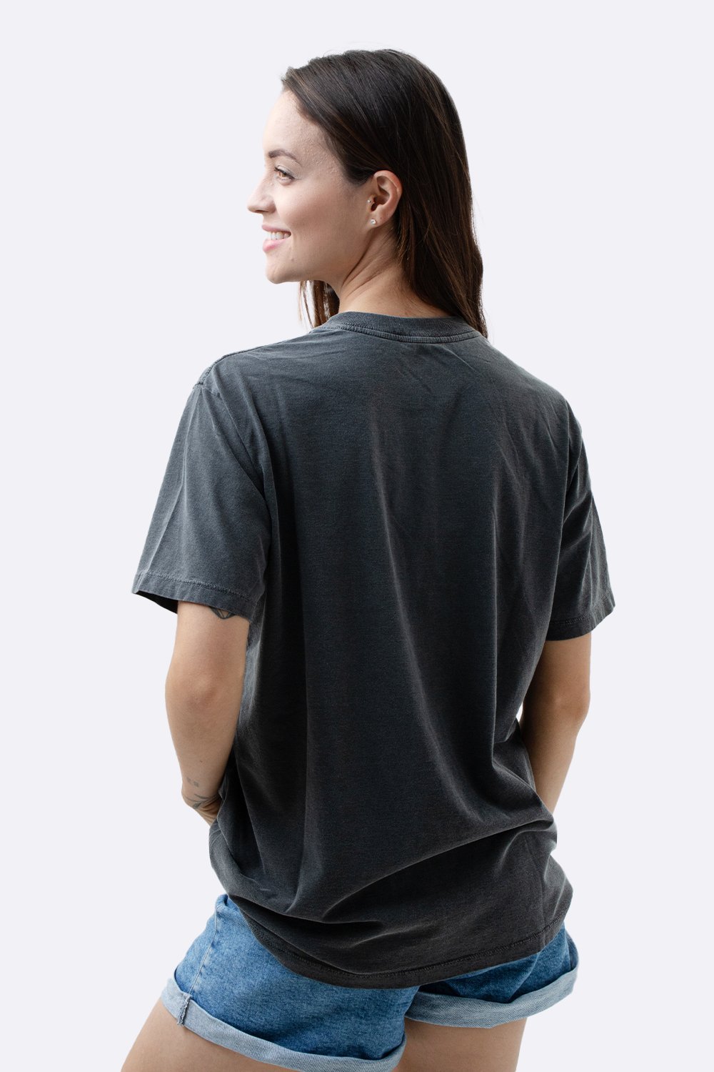 Com modelagem levemente quadrada e corte reto, a camiseta tem caimento fluido e democrático.