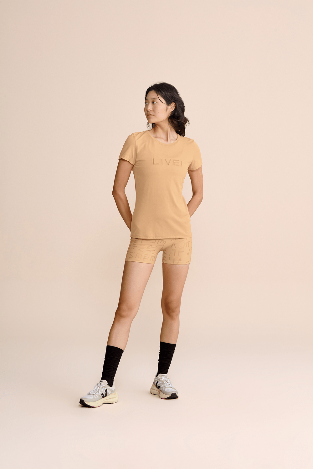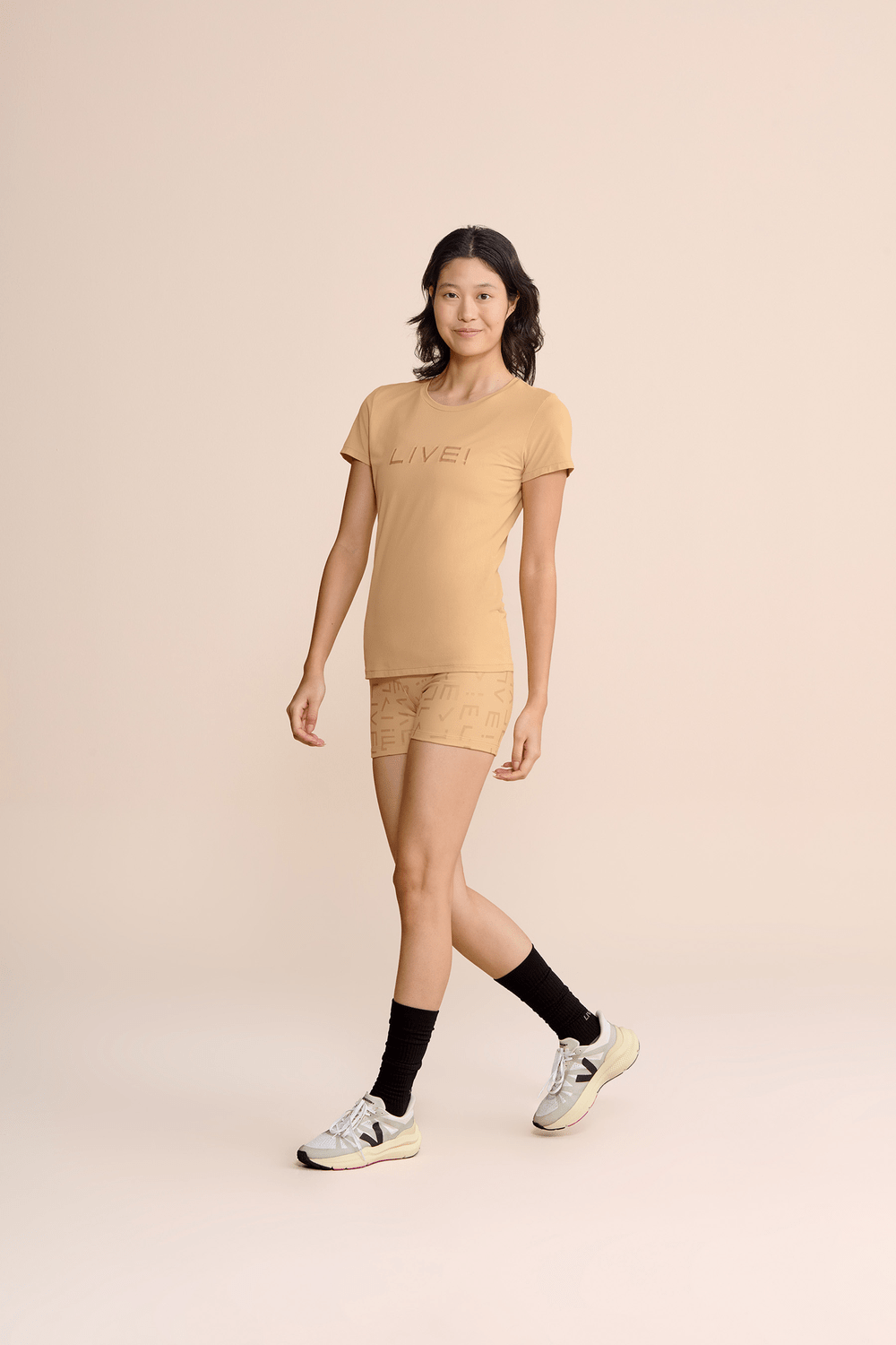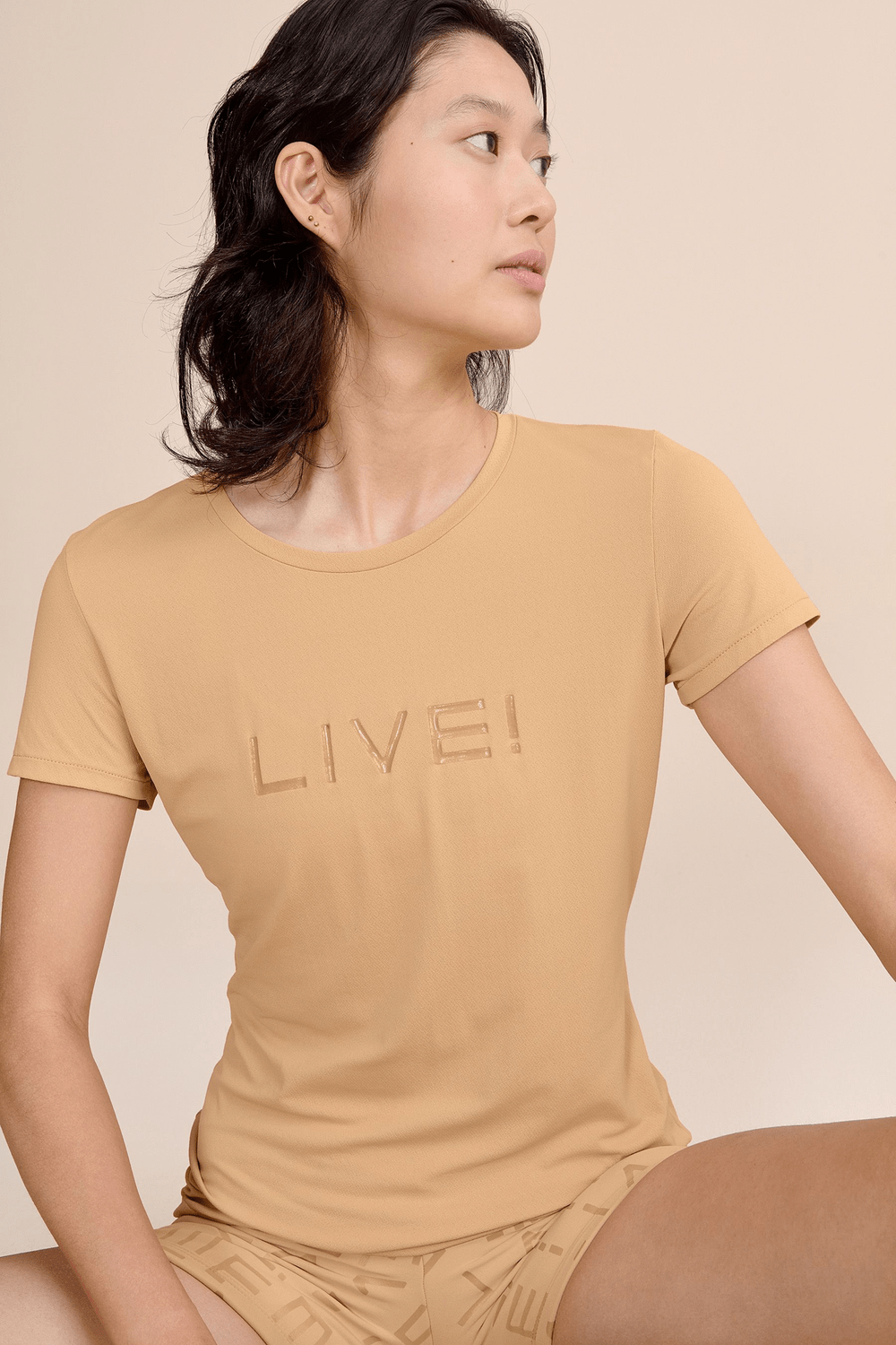 Seu tecido ultraleve com textura macia garante um toque suave sobre a pele, enquanto a exclusiva estampa Signature LIVE! com leve brilho adiciona personalidade ao look.
