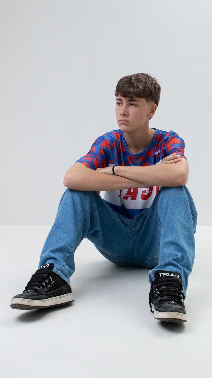 É a camiseta perfeita para quem quer se destacar sem precisar exagerar: a combinação de Azul/Vermelho vibrante com cinza cria um contraste moderno, enquanto a estampa Naja mostra personalidade e atitude.
