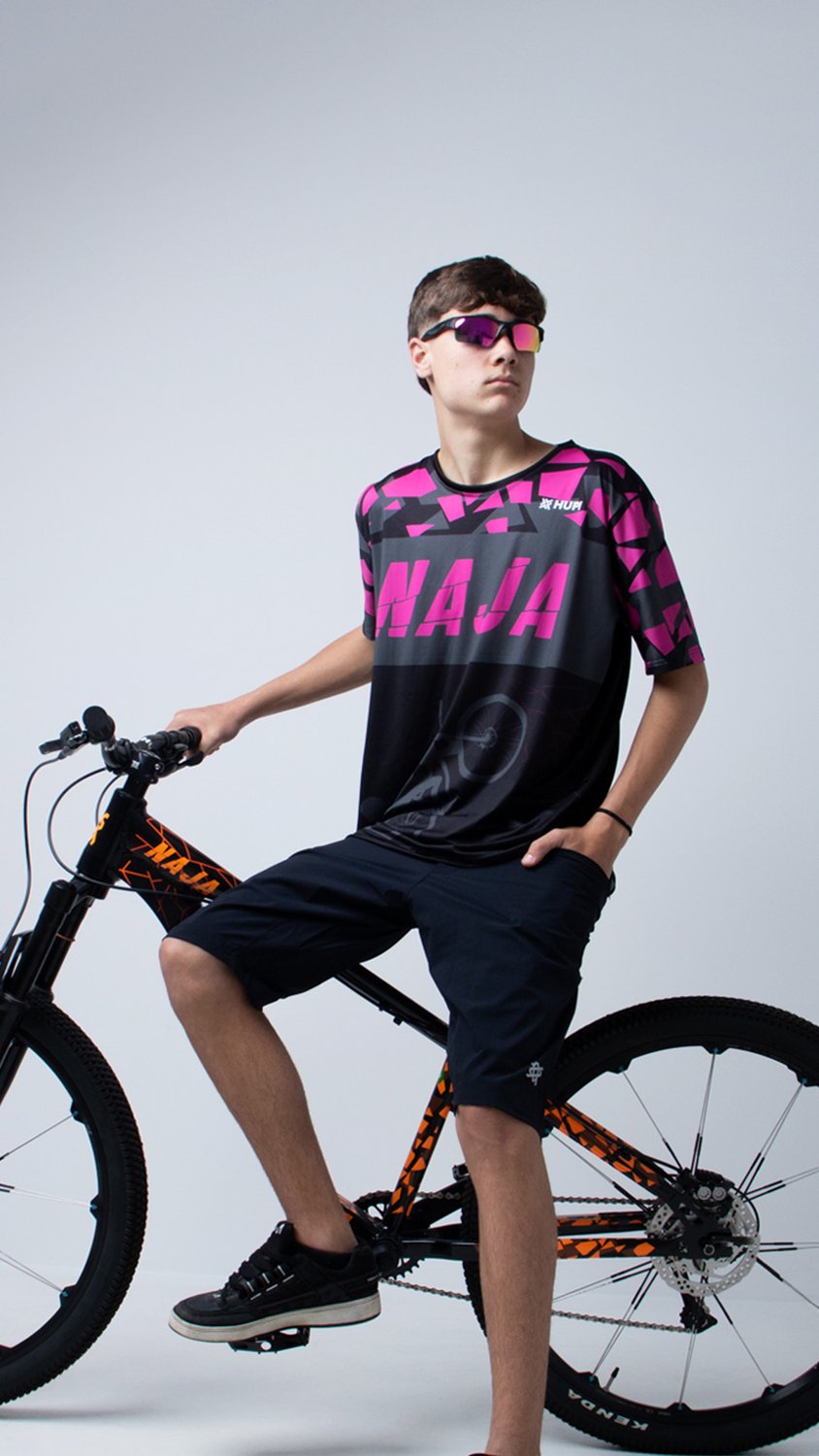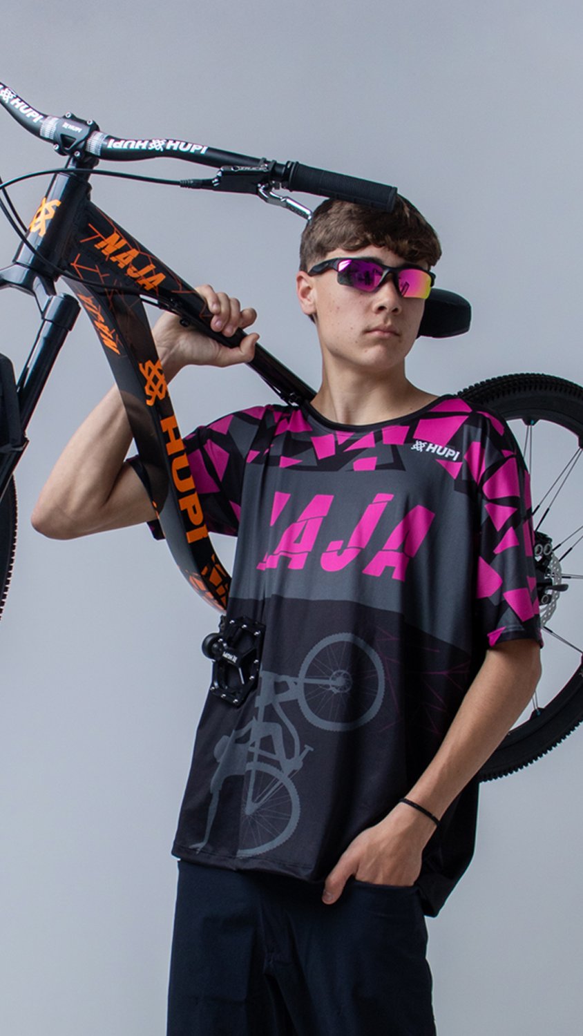 Especificações Técnicas da Camiseta Masculina HUPI Bike Naja Preto/Pink