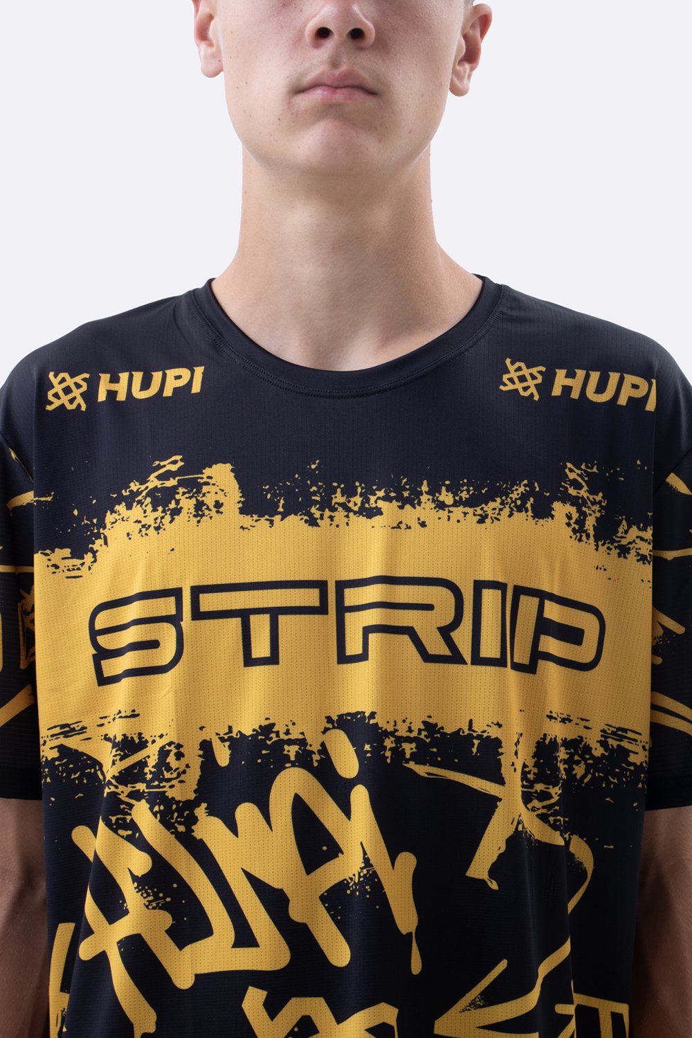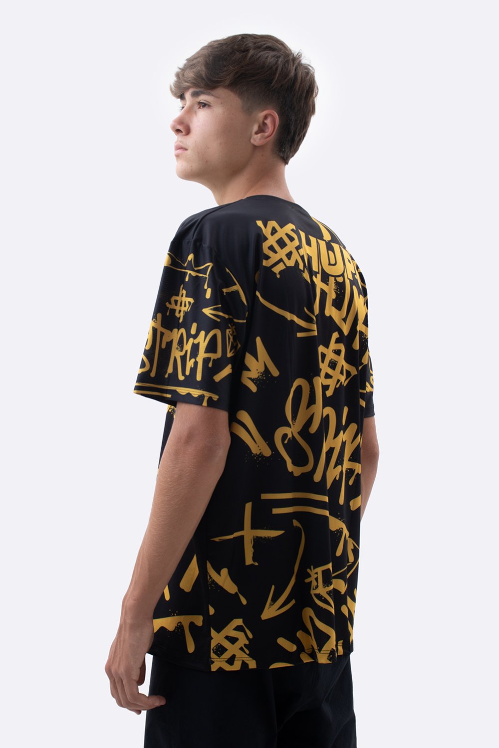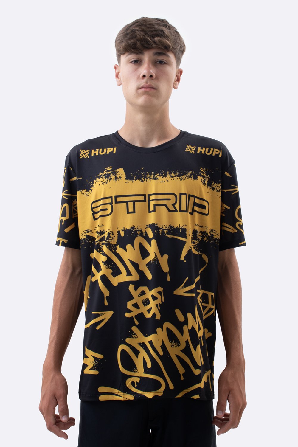 O preto combinado ao amarelo vibrante cria impacto visual imediato. O nome STRIP aparece em destaque, reforçando conexão direta com o universo da bike e transmitindo personalidade. Não é apenas uma camiseta casual. É uma peça com leitura visual estratégica, construída para quem gosta de movimento, estilo e presença.
