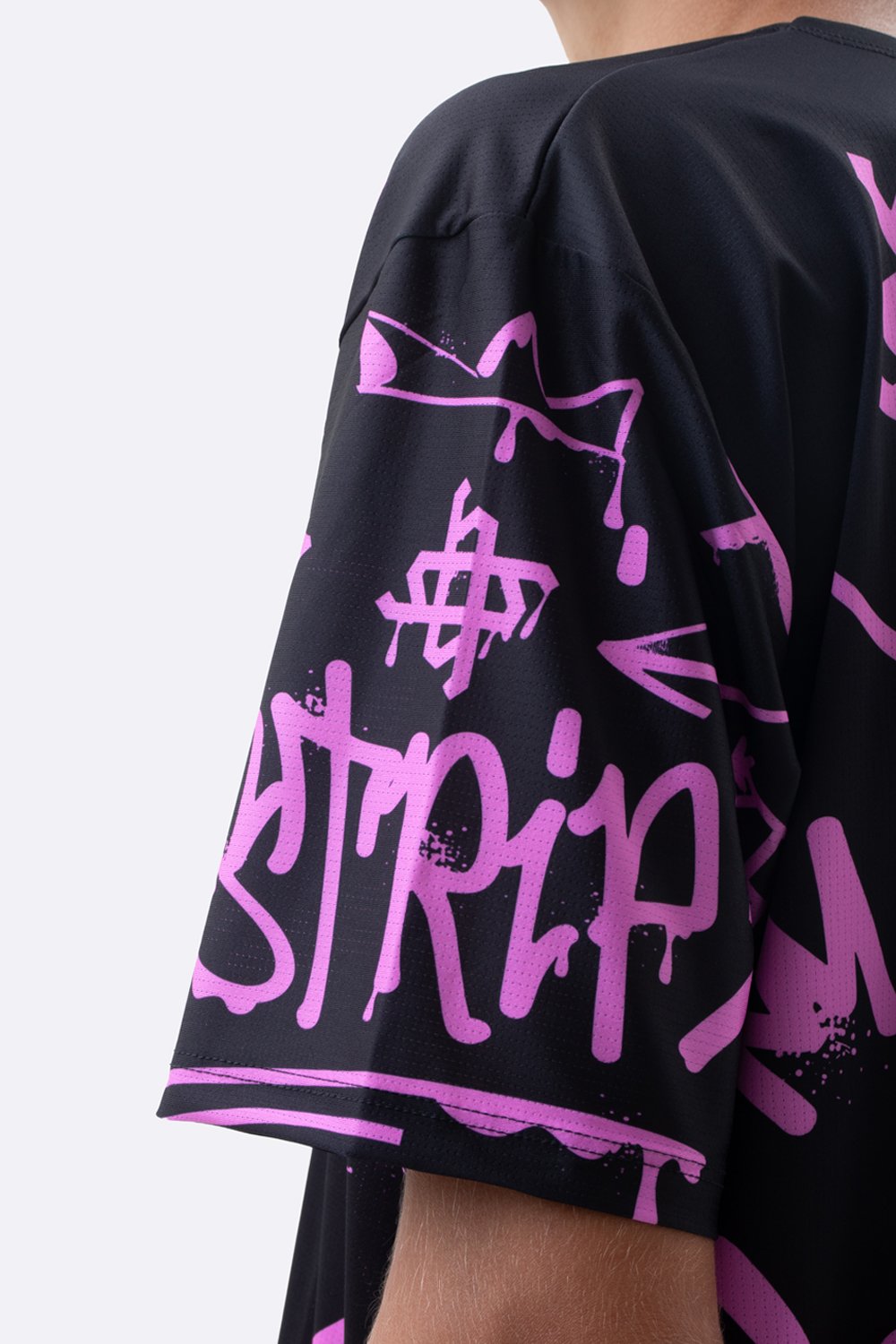 O preto combinado ao pink vibrante cria impacto visual imediato. O nome STRIP aparece em destaque, reforçando conexão direta com o universo da bike e transmitindo personalidade. Não é apenas uma camiseta casual. É uma peça com leitura visual estratégica, construída para quem gosta de movimento, estilo e presença.