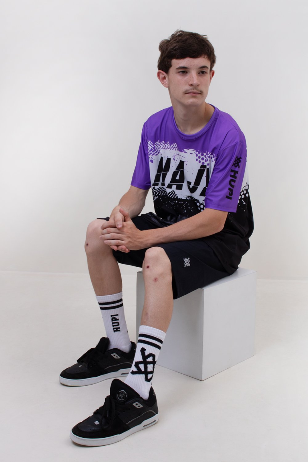 Seja para pedalar, treinar ou compor looks estilosos, a Camiseta HUPI Naja Roxo/Branco/Preto é a escolha perfeita.