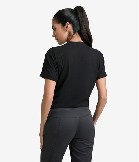 O decote em ribana reforçada oferece elasticidade e conforto adicional, mantendo o formato original da peça mesmo após várias lavagens.