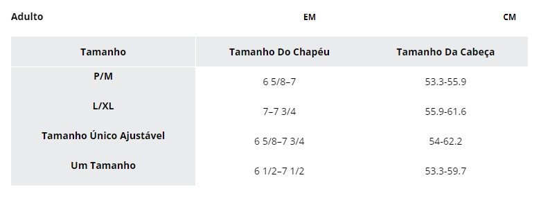 *Para medir a circunferência da cabeça, use uma fita métrica macia e flexível para circular a área da coroa (acima das sobrancelhas e orelhas).