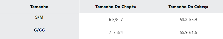 *Para medir a circunferência da cabeça, use uma fita métrica macia e flexível para circular a área da coroa (acima das sobrancelhas e orelhas).