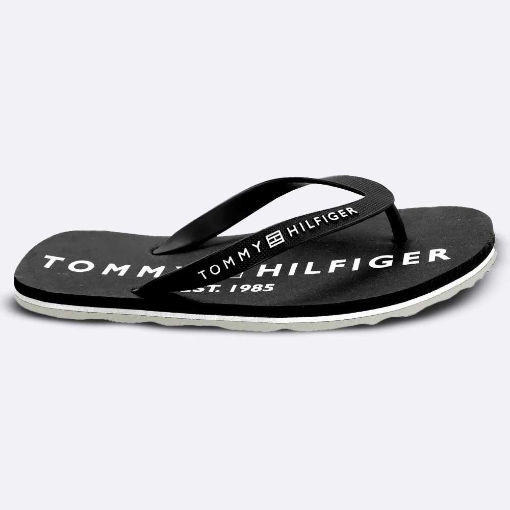 Chinelo de tiras masculino Tommy Hilfiger na cor preta com solado em cinza.