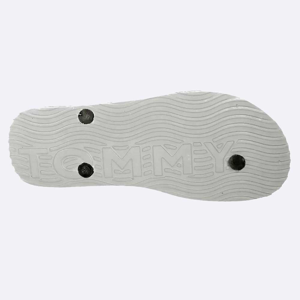 Sola antiderrapante emborrachada, na cor cinza, com nome "TOMMY HILFIGER" da marca em alto relevo.