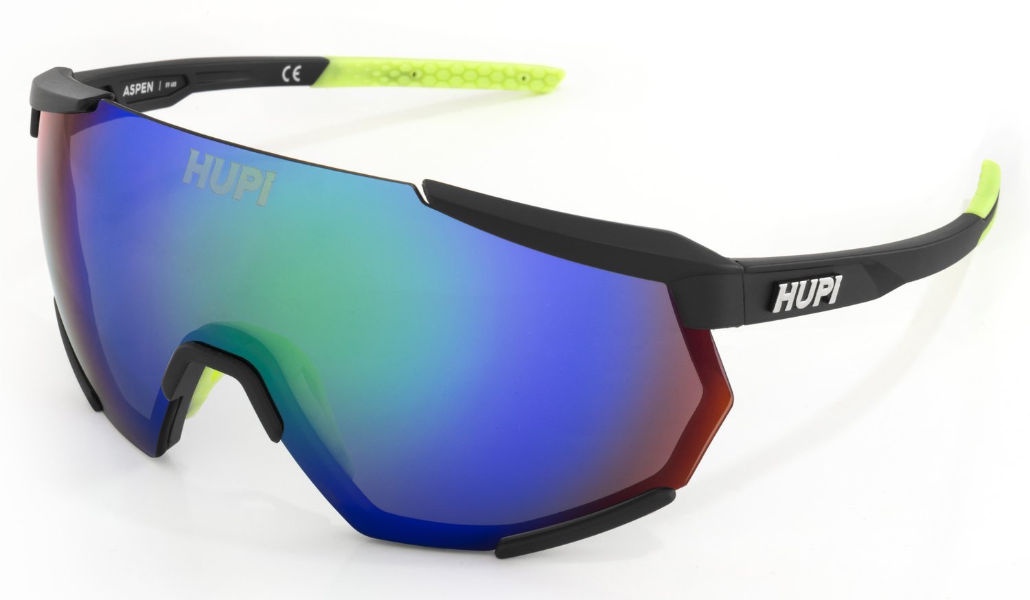 A linha de óculos de sol HUPI Aspen, com armação preta e lentes douradas, foi especialmente criada para atender às necessidades de ciclistas e corredores, unindo estilo moderno e funcionalidade.