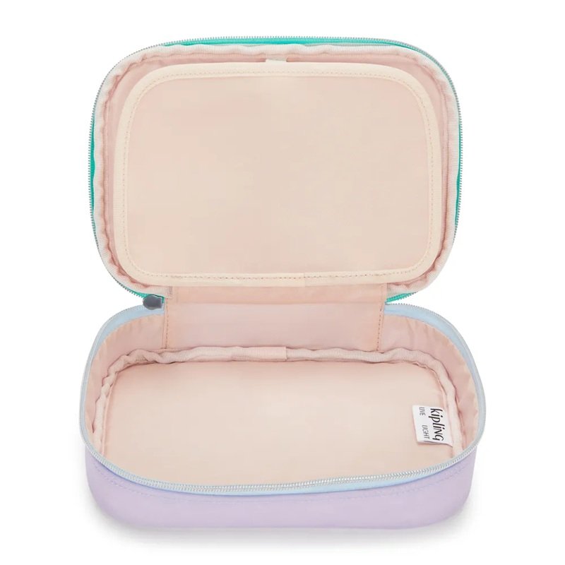 O Estojo Kipling 100 Pens Lilás é confeccionado em poliamida resistente, garantindo leveza, durabilidade e praticidade na limpeza. O forro interno em poliéster facilita a higienização e protege os itens contra atritos e desgaste, prolongando a vida útil do estojo.