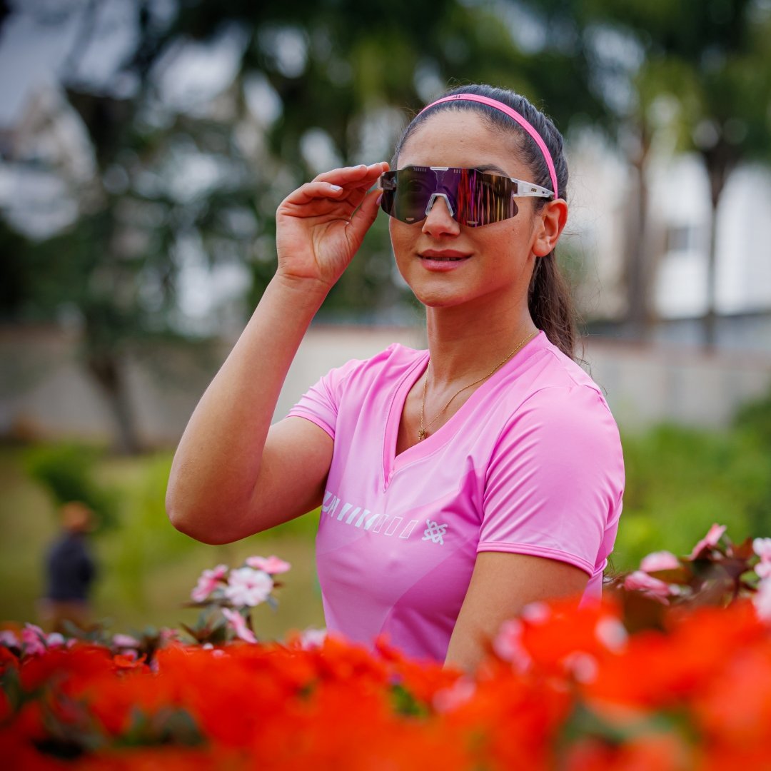 A faixa rosa acrescenta um toque vibrante e feminino, ideal para quem gosta de um visual alegre.