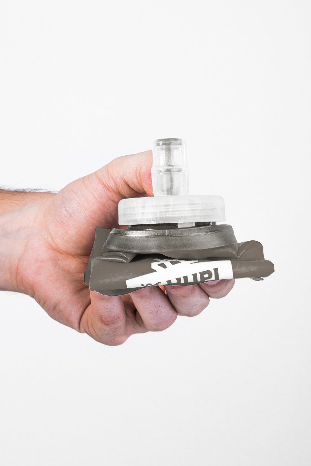 *Para utilizar a garrafa dobrável Soft Flask HUPI, basta pressionar suavemente a válvula com os dentes enquanto suga a água. Esse design intuitivo garante um fluxo eficiente, permitindo hidratação rápida e prática durante suas atividades.*