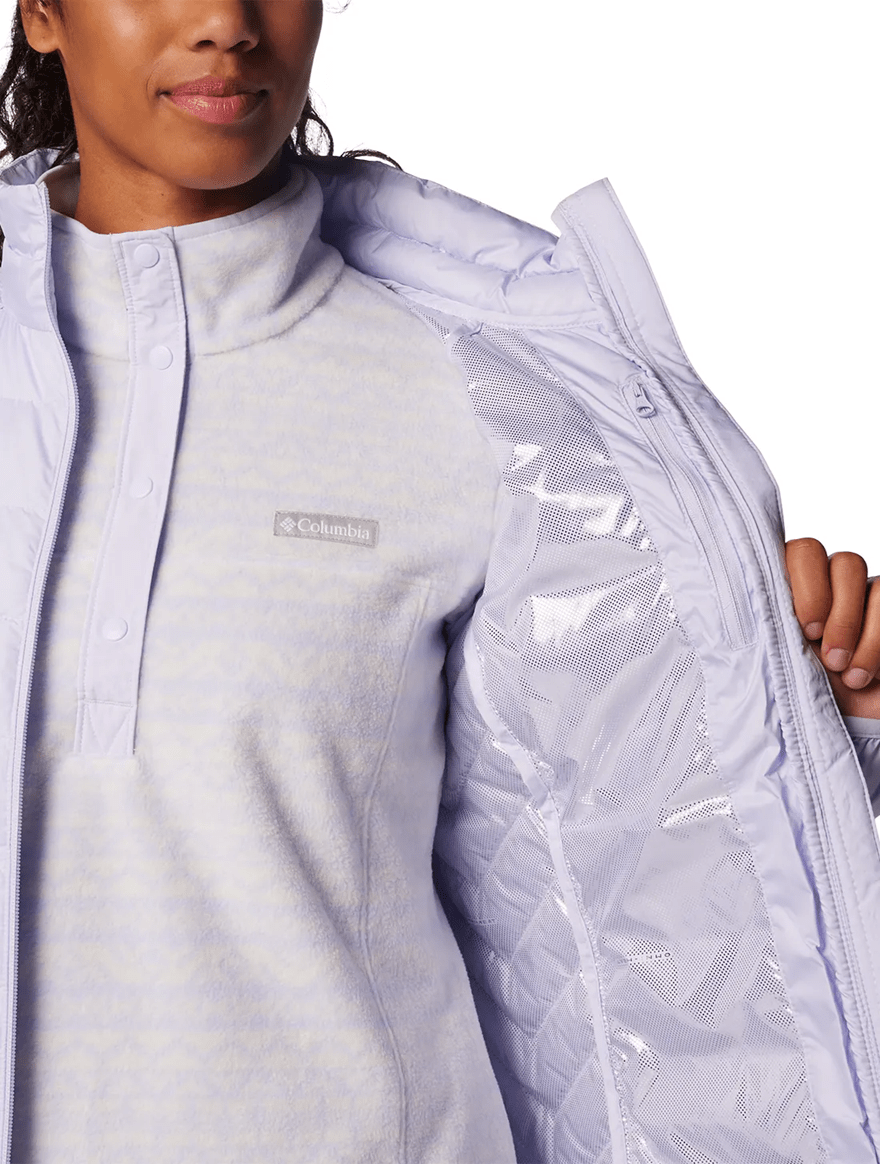 A Jaqueta Columbia Feminina Powder Lite II Snowdrift combina isolamento térmico inteligente, leveza e estilo casual em uma peça versátil para o frio.