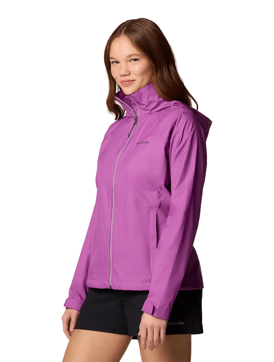A Jaqueta Columbia Feminina Switchback IV na cor lilás é a escolha ideal para quem busca proteção leve contra vento e chuva, com um toque delicado e moderno no visual.