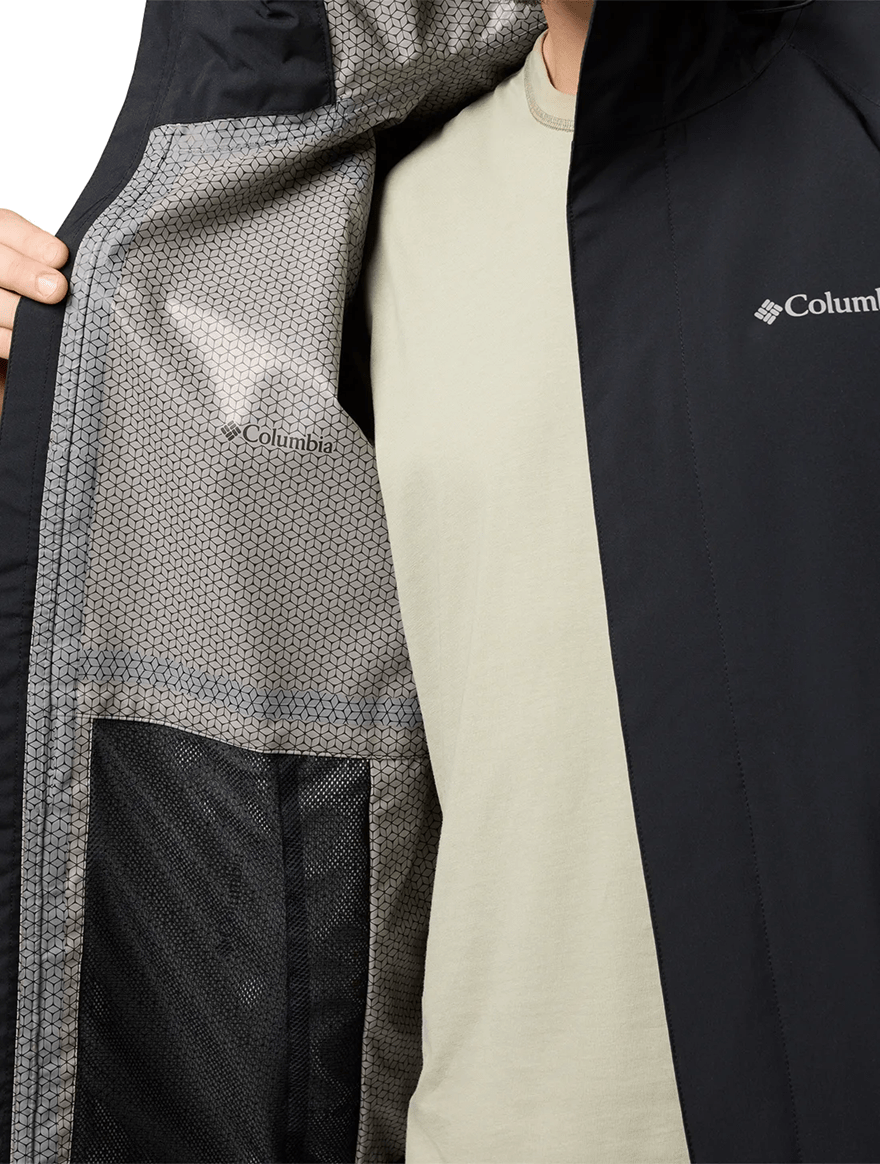 A Jaqueta Columbia Masculina Earth Explorer II com Capuz Preta é perfeita para quem busca aliar estilo urbano com alta proteção para o uso outdoor.