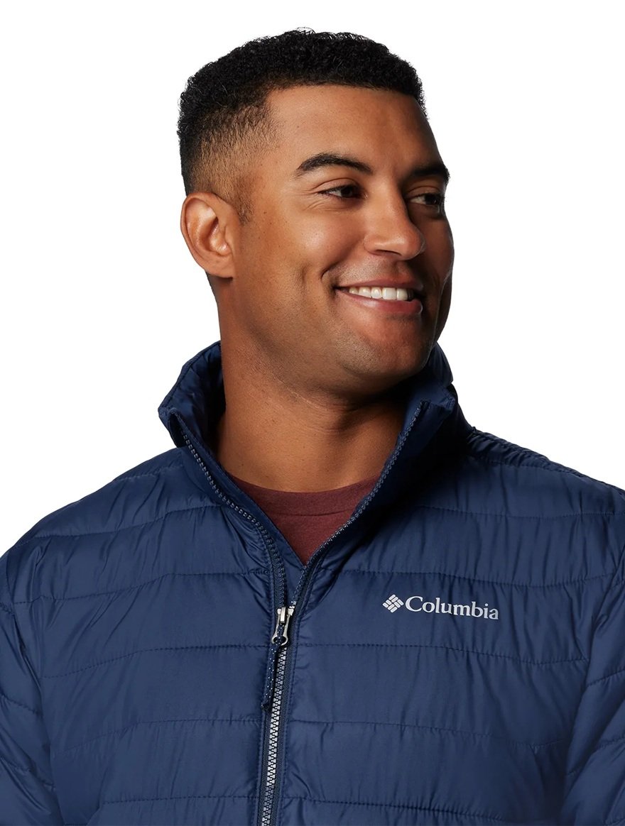 A Jaqueta Columbia Masculina Powder Lite II Azul Marinho pode ser usada no dia a dia para enfrentar o frio com conforto, combinando facilmente com jeans, calças esportivas ou looks casuais.