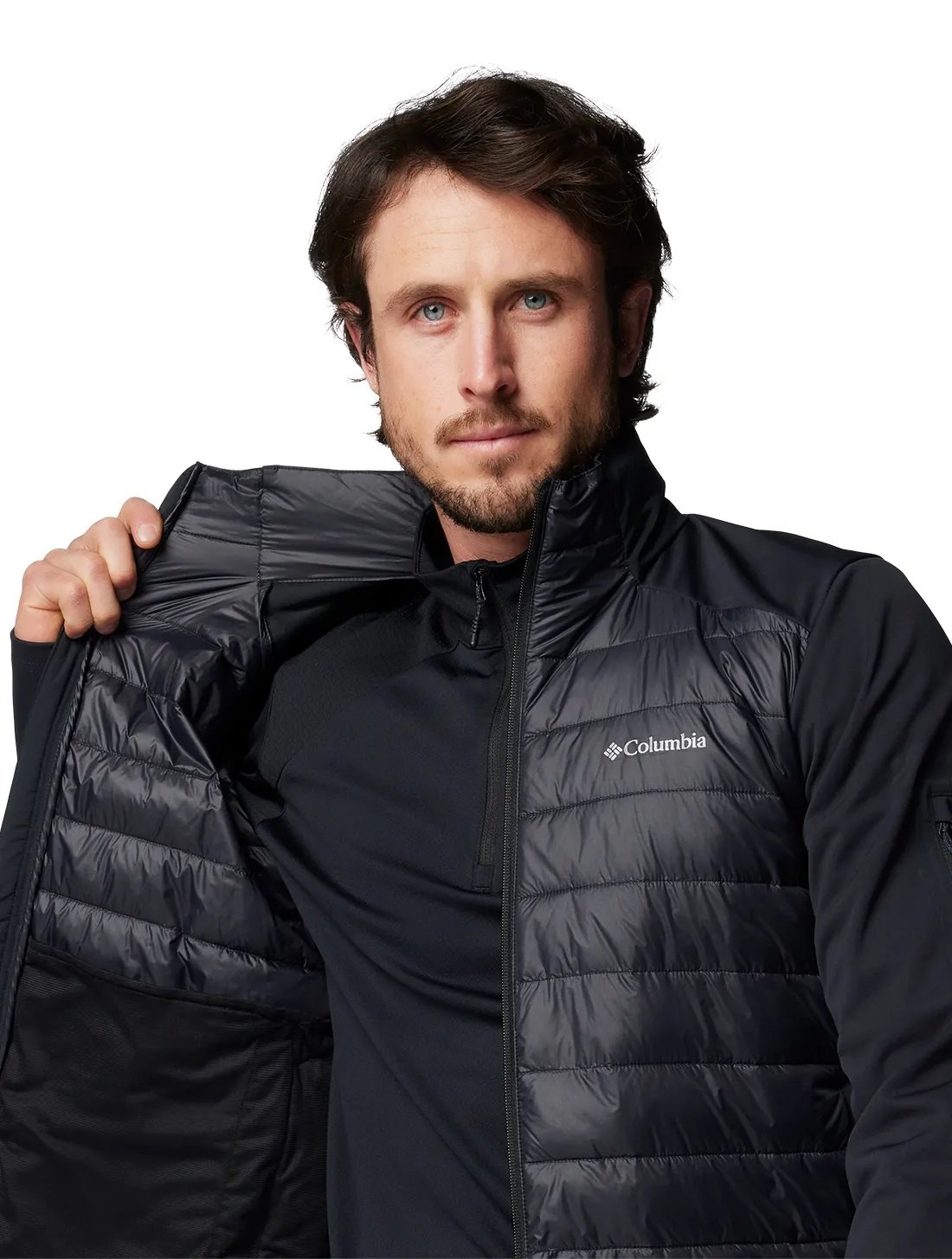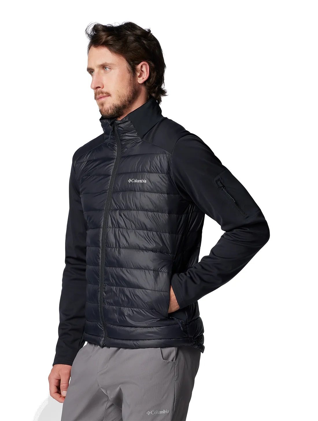 A Jaqueta Columbia Tech Hybrid Softshell Preto Masculino pode ser usada sozinha em dias frios moderados ou como camada intermediária sob um casaco mais pesado para proteção contra temperaturas mais baixas.