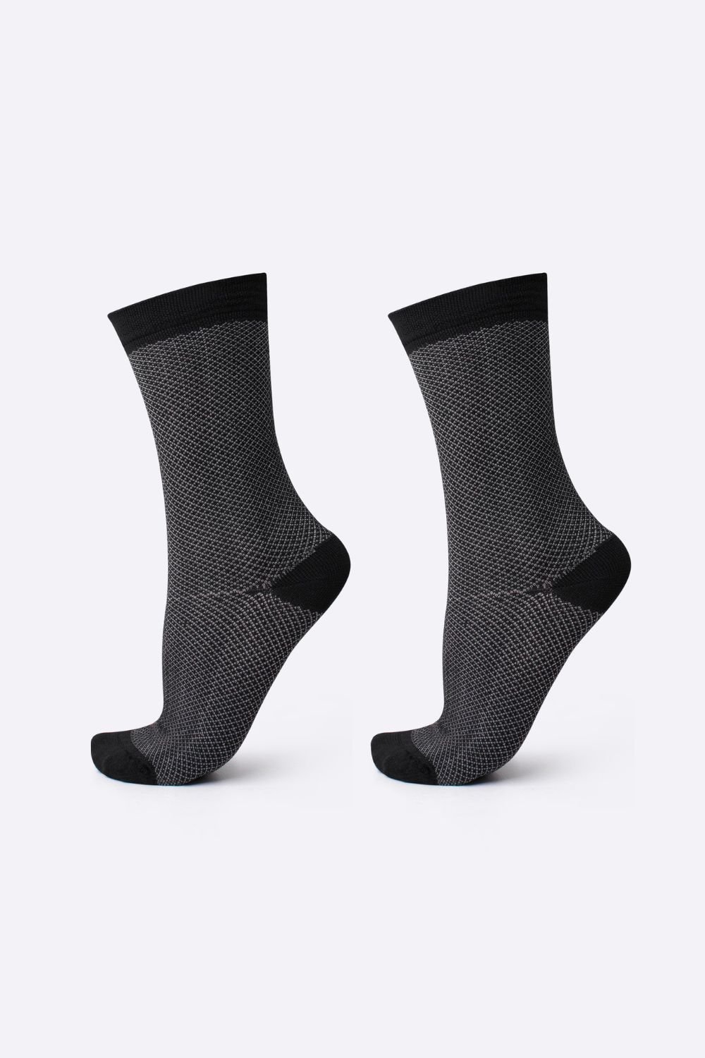 Na região dos dedos e calcanhar, os fios são dispostos em direções diferentes do restante da meia, fazendo com que a modelagem se