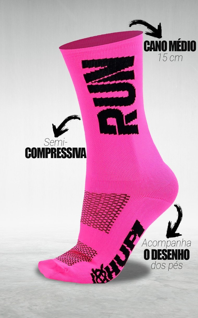 01 Par Meia Corrida HUPI Run Rosa Neon - LT para Pés 34-38