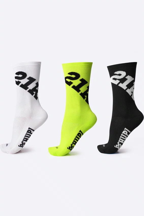 Kit 03 Pares Meia para Corrida Hupi Ultra 21K Amarelo Branco e Preto