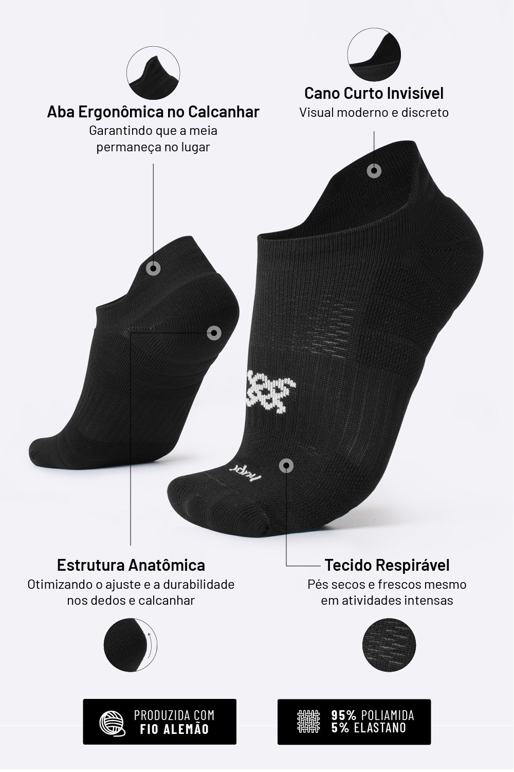 Meia Curta para Corrida HUPI Running Pro Invisível PretoCor: PRETO | Quant: 3xMeia Curta para Corrida HUPI Running Pro Invisível BrancoCor: BRANCO | Quant: 3x