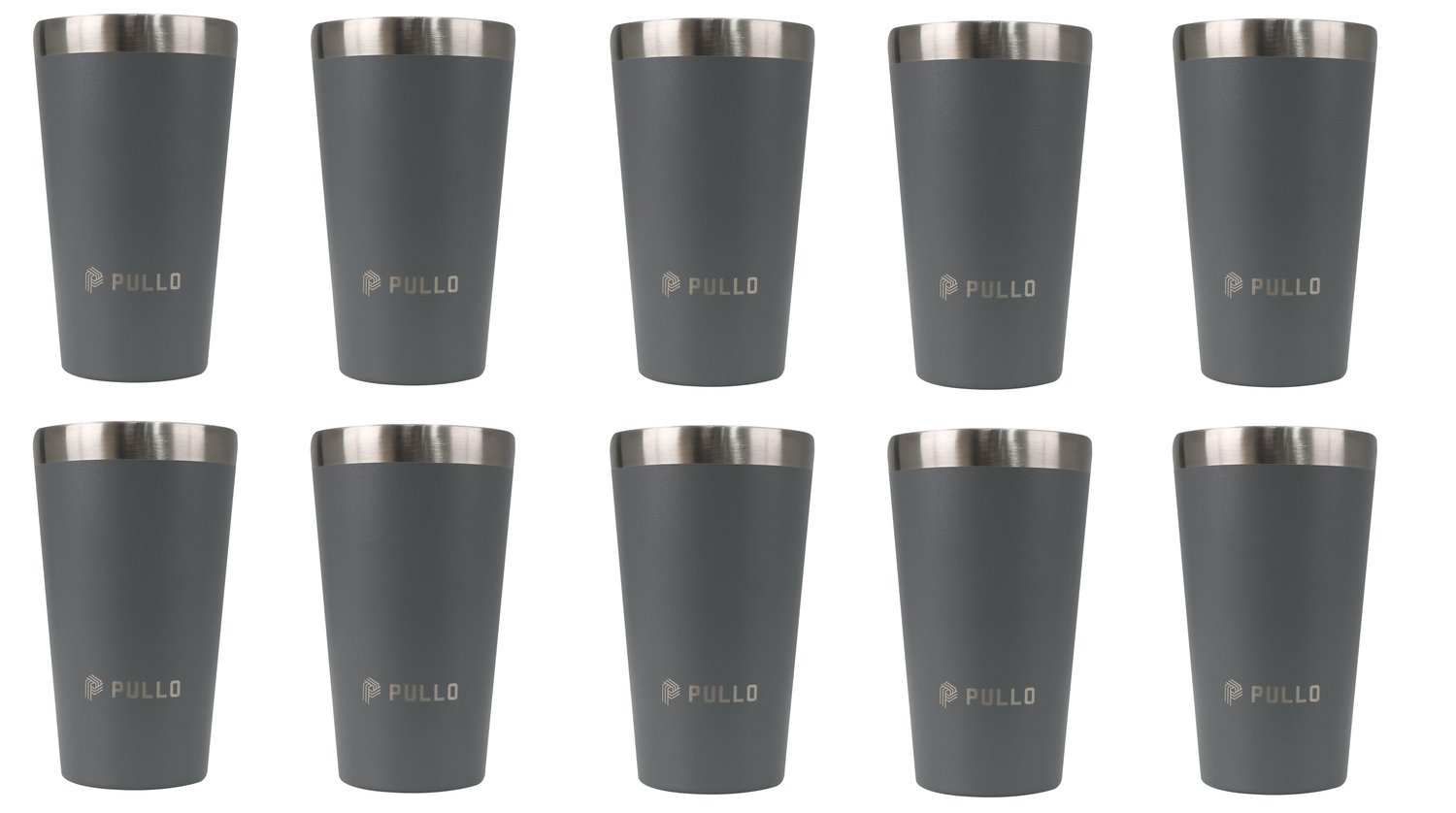 Kit com 10 Copos Térmicos Pullo Fun 480ML Cinza