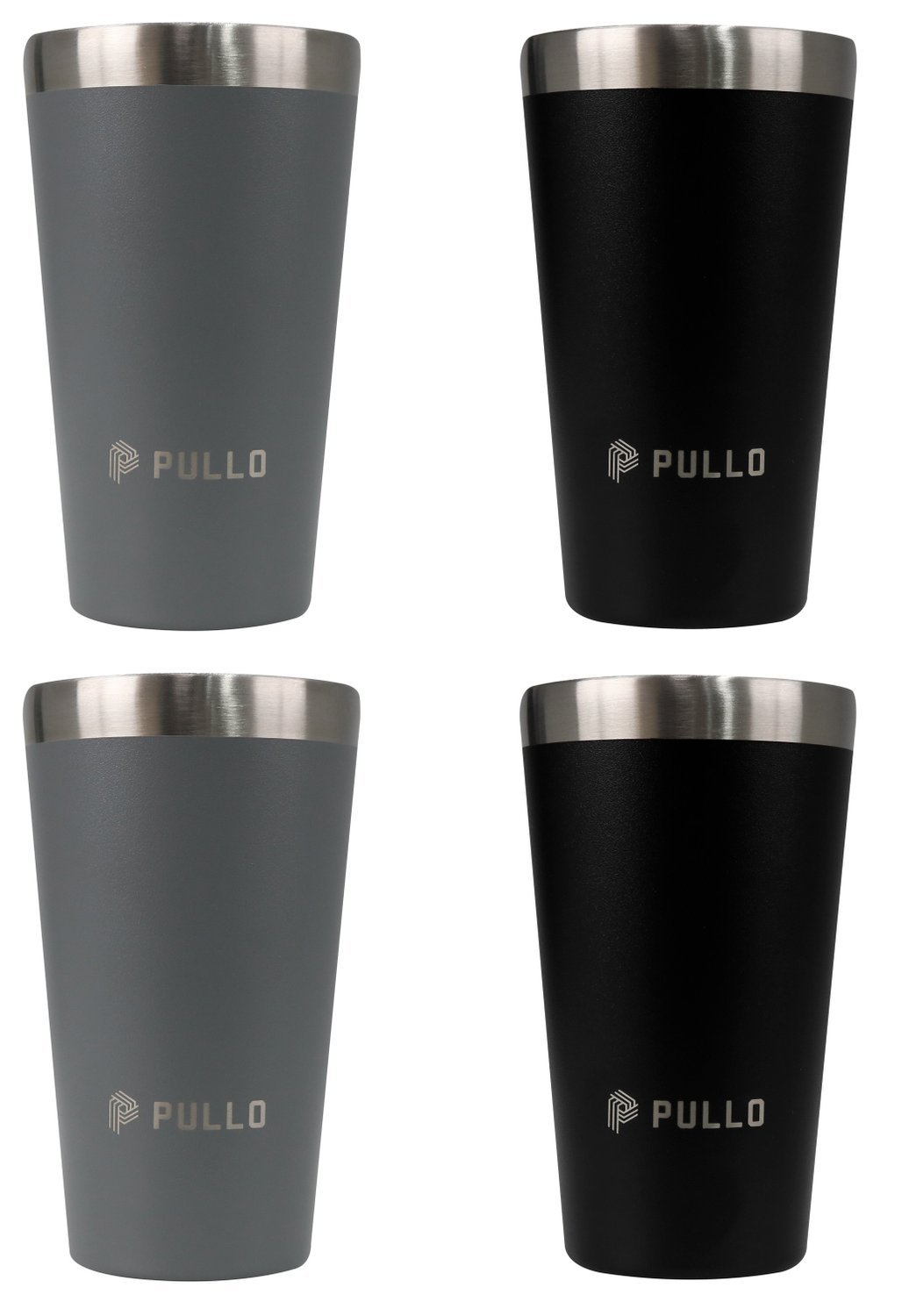 Kit com 4 Copos Térmicos Pullo Fun 480ML Preto e Cinza