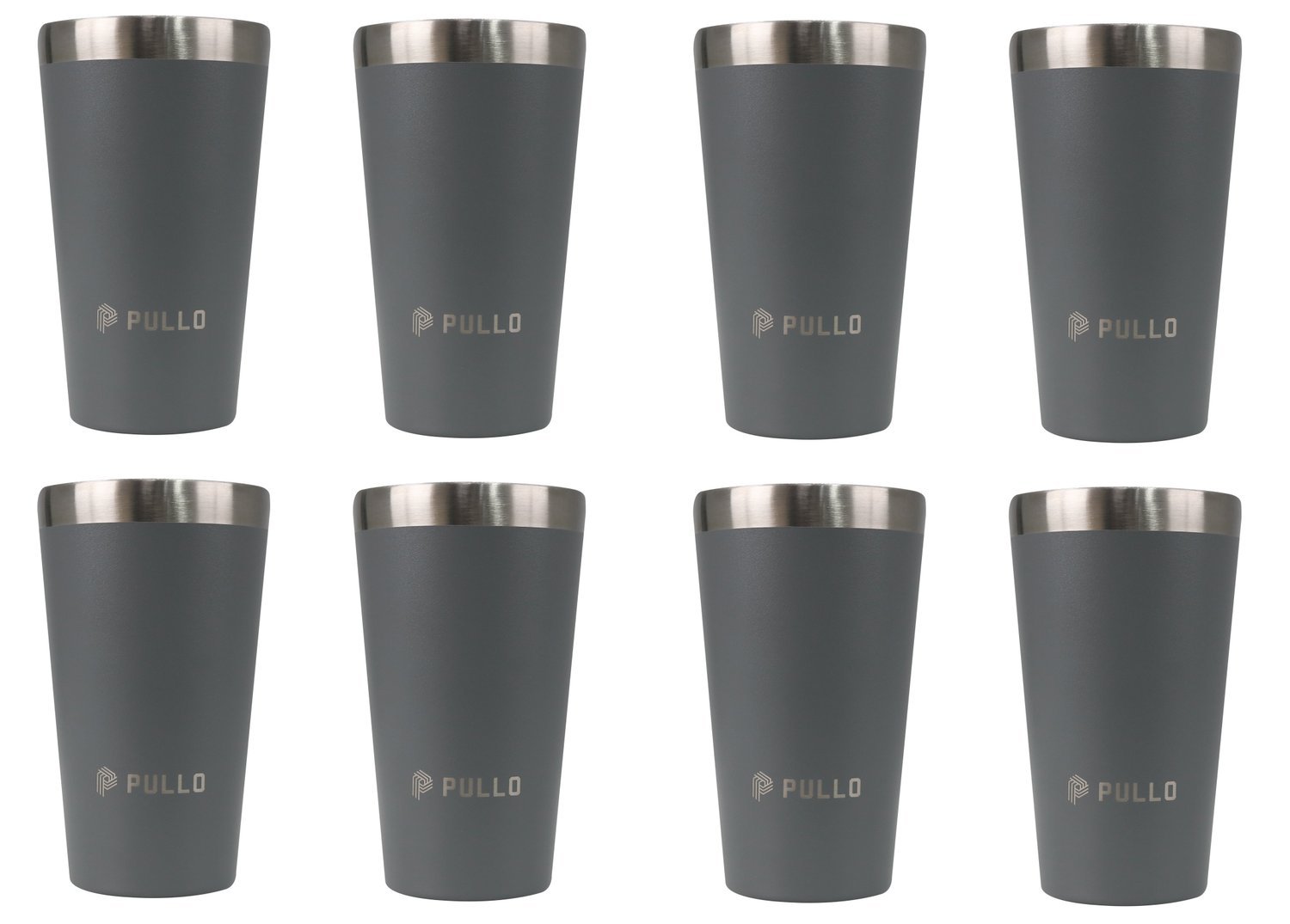 Kit com 8 Copos Térmicos Pullo Fun 480ML Cinza