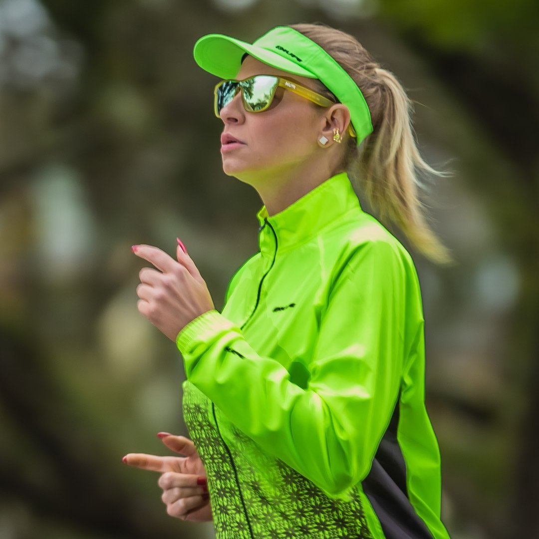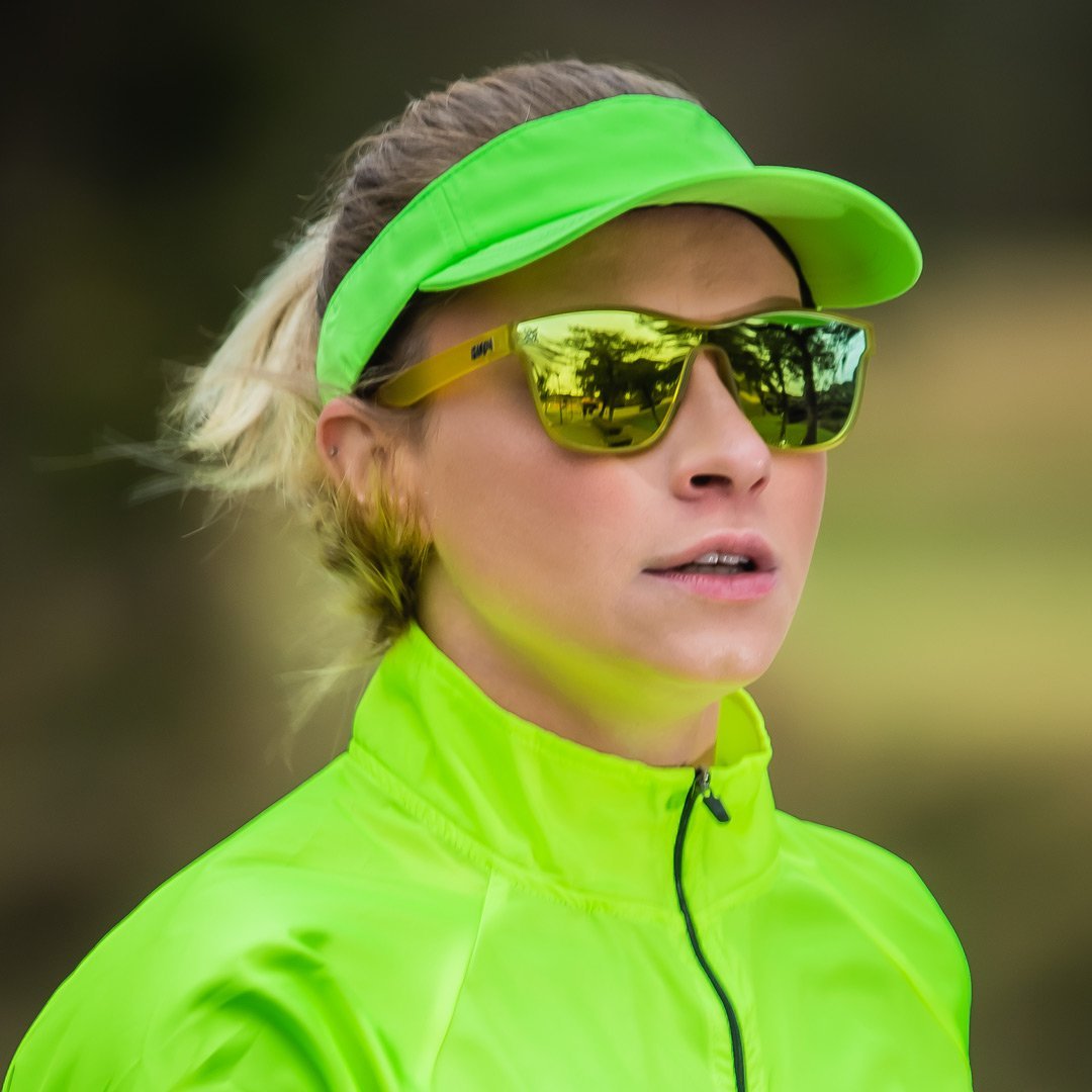 Viseira para Corrida HUPI Verde Flúor Quant: 1xÓculos de Sol HUPI Major Amarelo - Lente Dourado Espelhado Quant: 1x