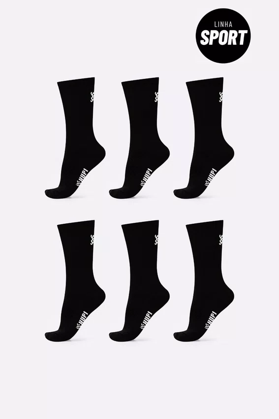 Kit com 6 pares de meias HUPI Sport Preto Liso