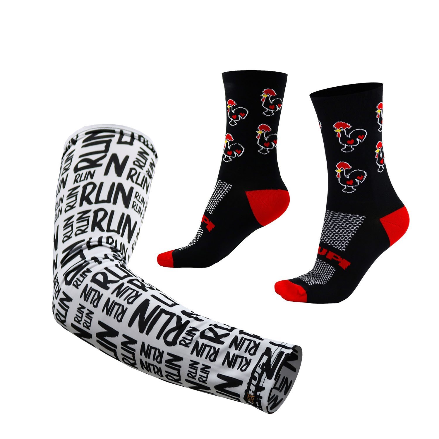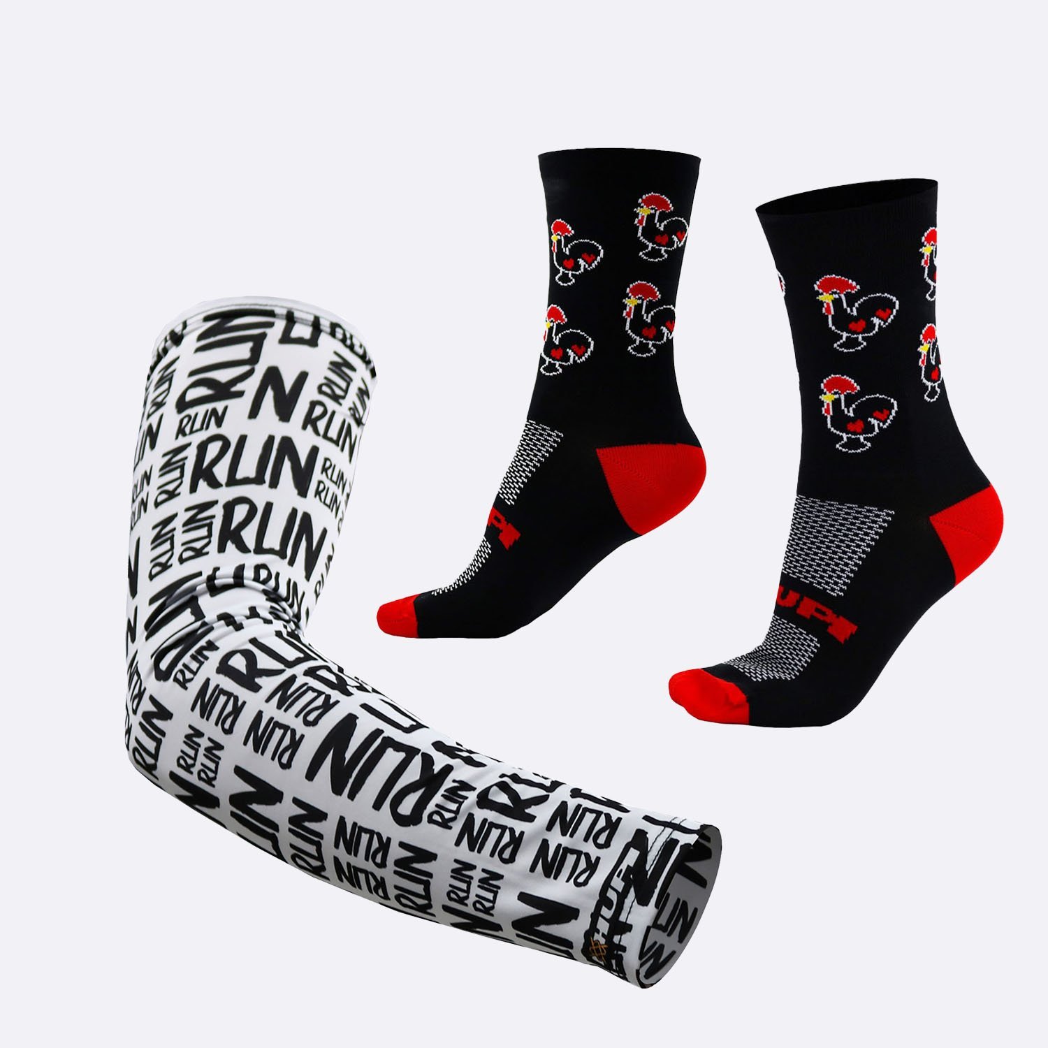 Kit Manguito HUPI Run Branco e Meia HUPI Galo Preto