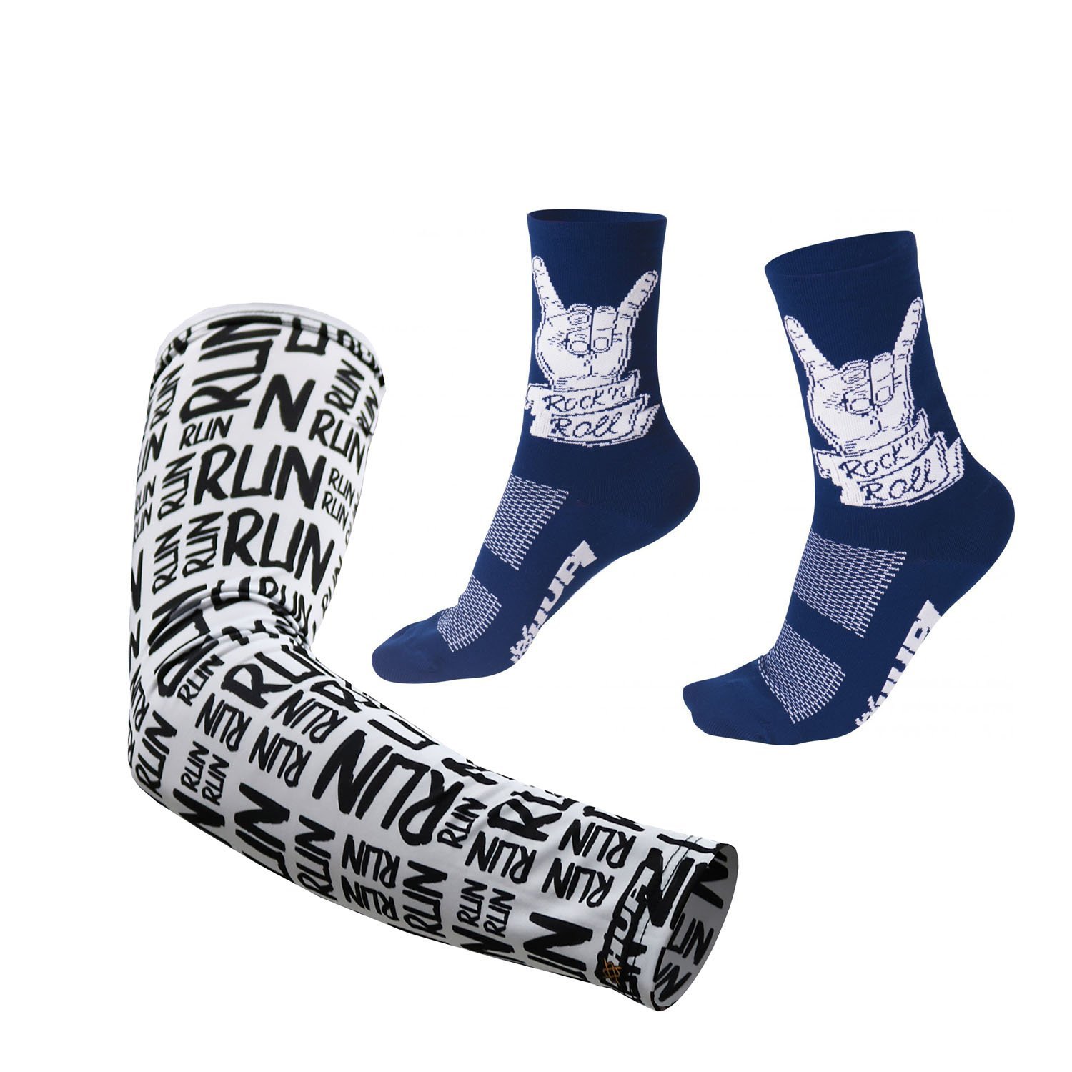 Kit Manguito HUPI Run Branco e Meia HUPI Rock N Roll Azul Marinho
